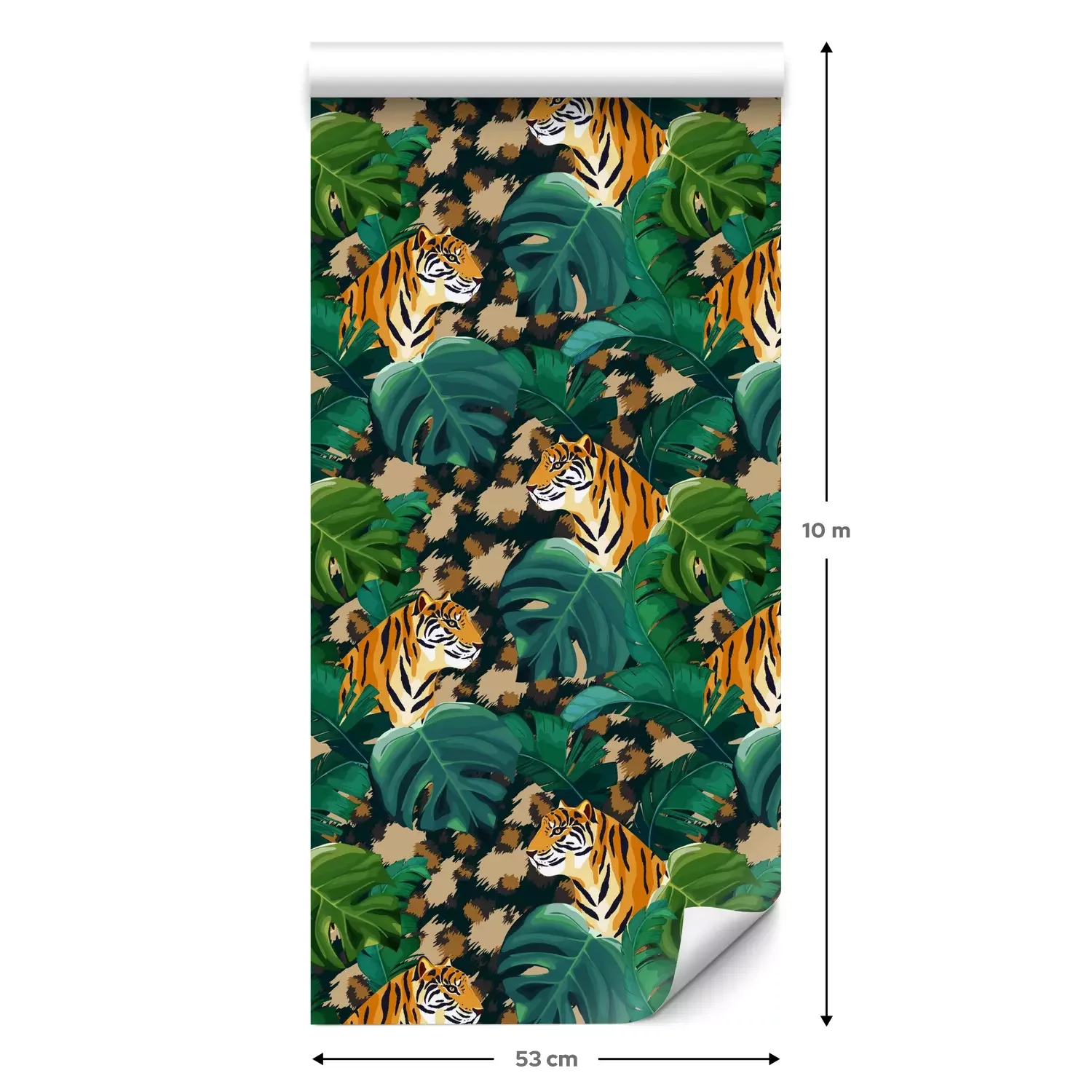 Eine Standard-Tapetenrolle hat die Maße 0,53 m x 10 m und deckt eine Wandfläche von etwa 5 m² ab.