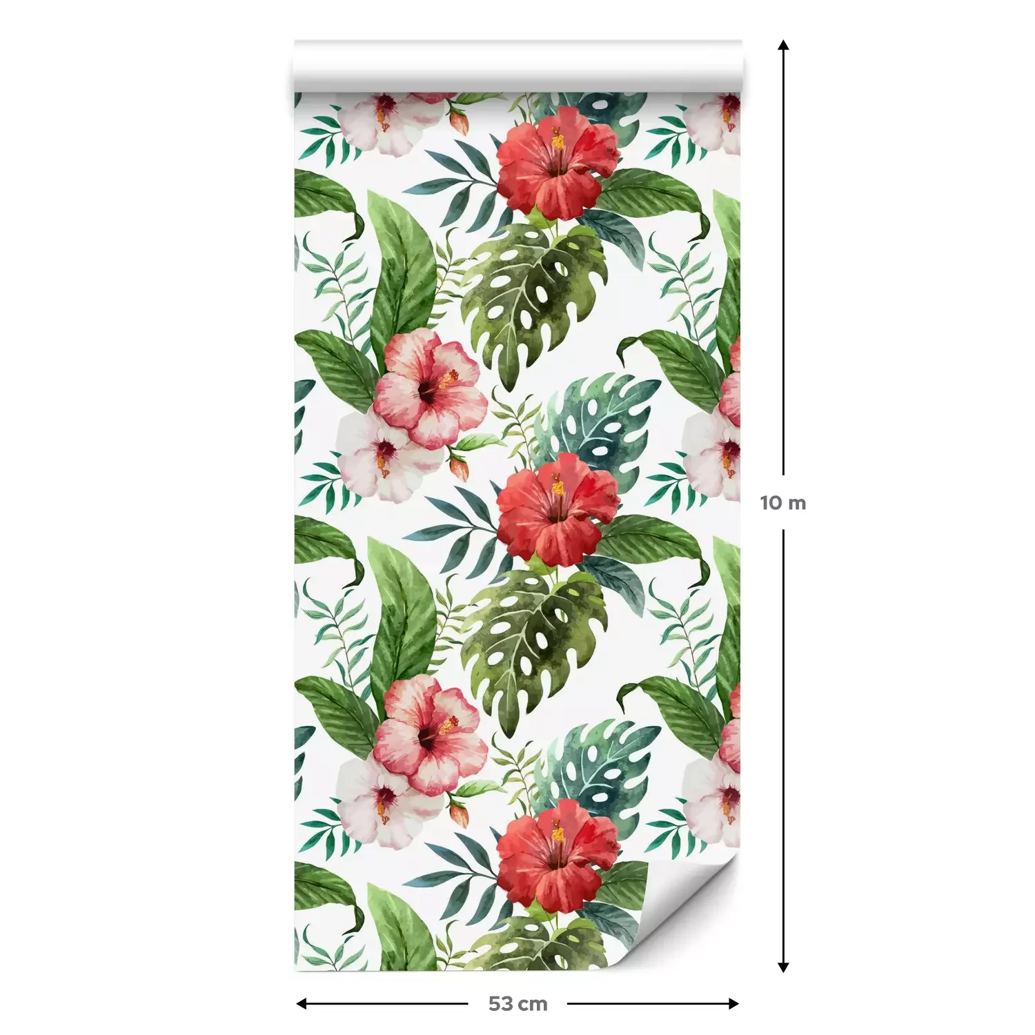 Eine Standard-Tapetenrolle hat die Maße 0,53 m x 10 m und deckt eine Wandfläche von etwa 5 m² ab.