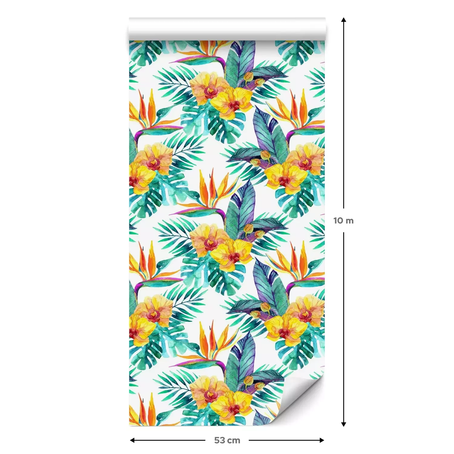 Eine Standard-Tapetenrolle hat die Maße 0,53 m x 10 m und deckt eine Wandfläche von etwa 5 m² ab.