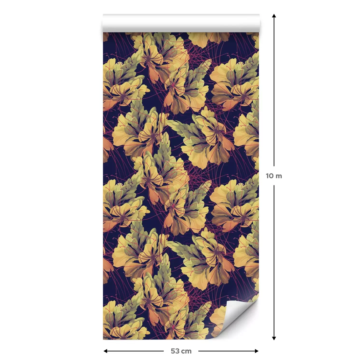 Eine Standard-Tapetenrolle hat die Maße 0,53 m x 10 m und deckt eine Wandfläche von etwa 5 m² ab.