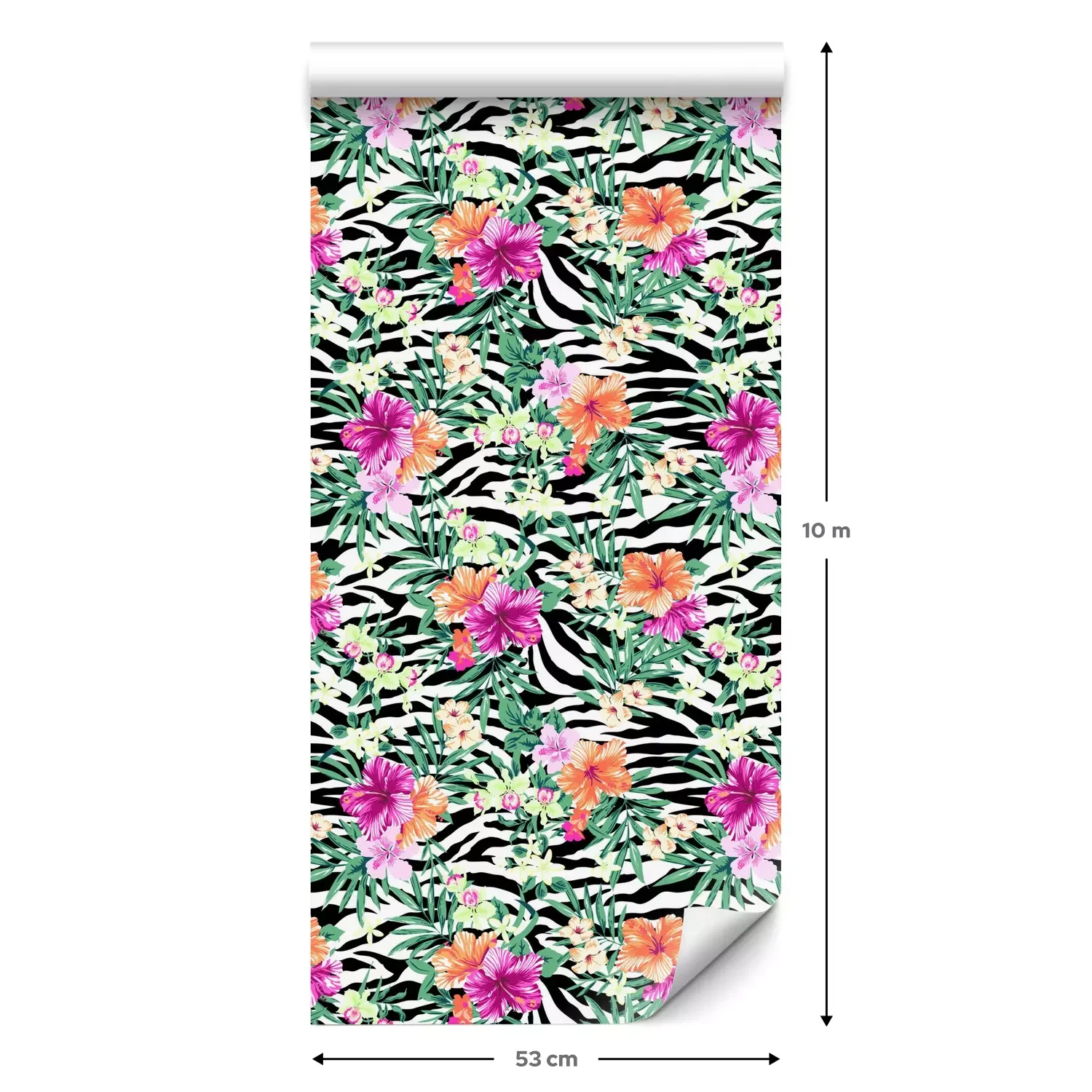 Eine Standard-Tapetenrolle hat die Maße 0,53 m x 10 m und deckt eine Wandfläche von etwa 5 m² ab.