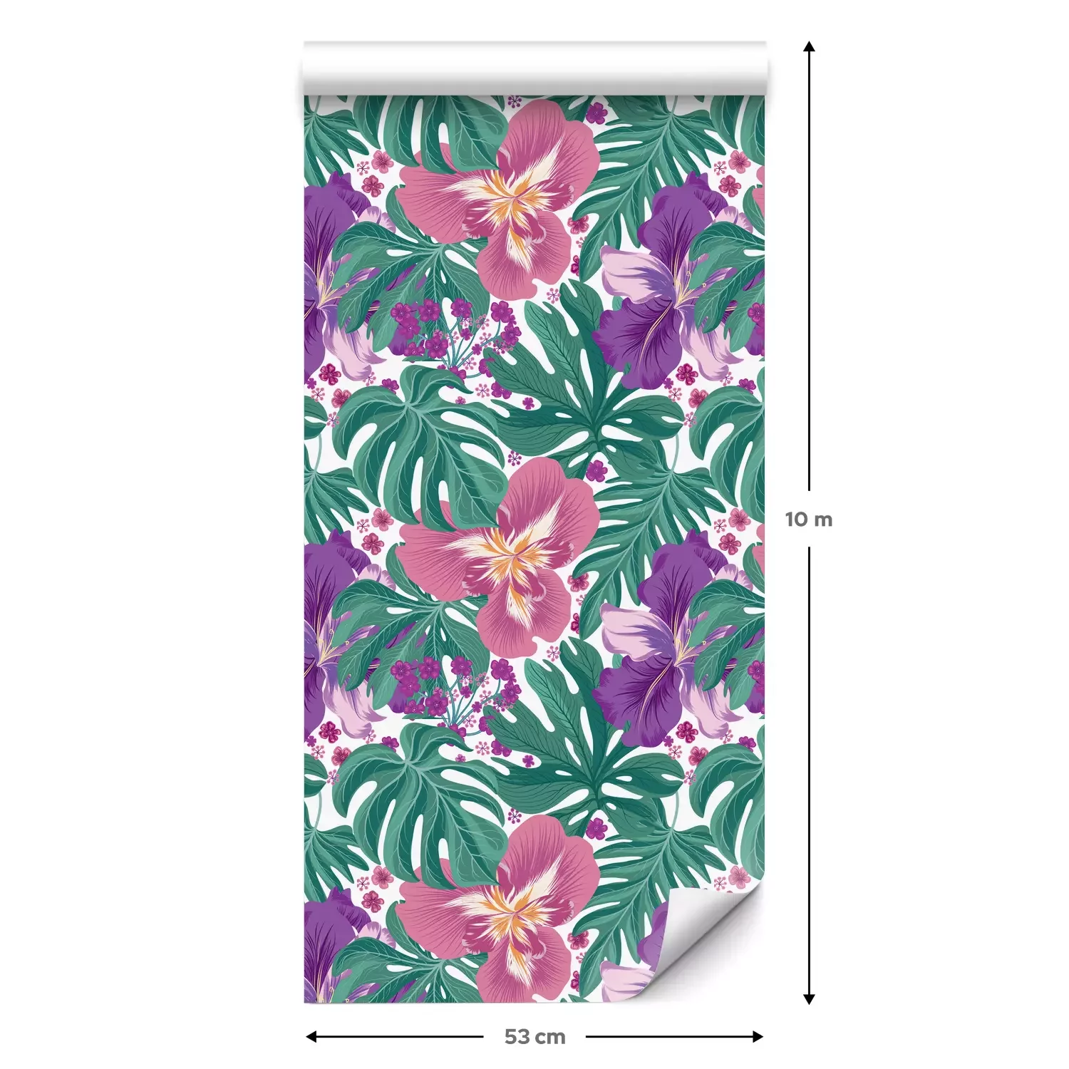 Eine Standard-Tapetenrolle hat die Maße 0,53 m x 10 m und deckt eine Wandfläche von etwa 5 m² ab.