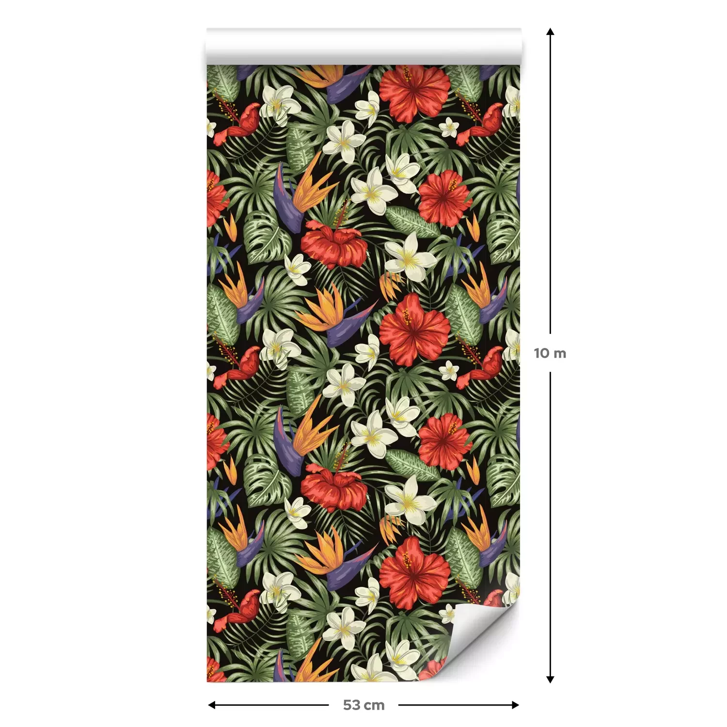Eine Standard-Tapetenrolle hat die Maße 0,53 m x 10 m und deckt eine Wandfläche von etwa 5 m² ab.