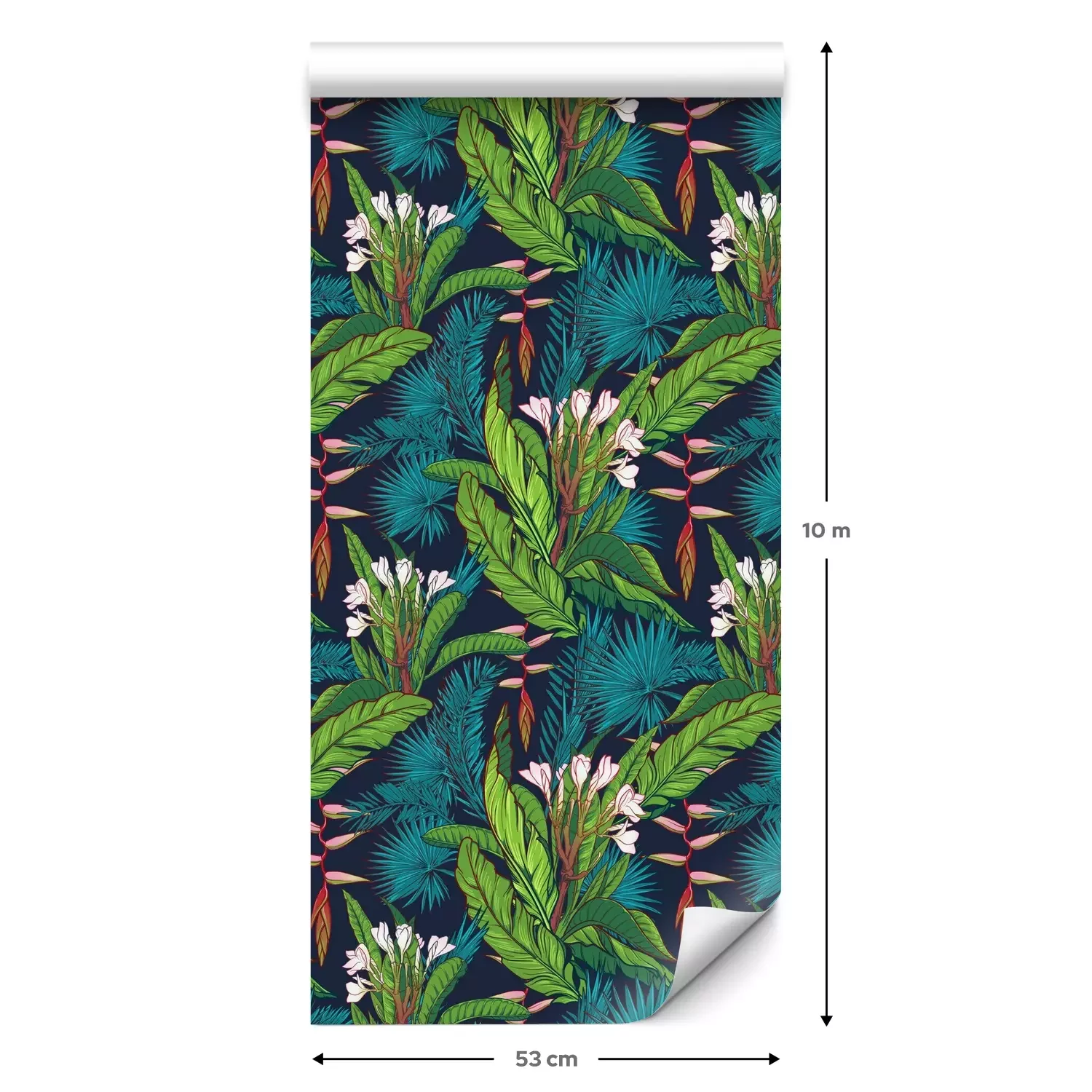 Eine Standard-Tapetenrolle hat die Maße 0,53 m x 10 m und deckt eine Wandfläche von etwa 5 m² ab.