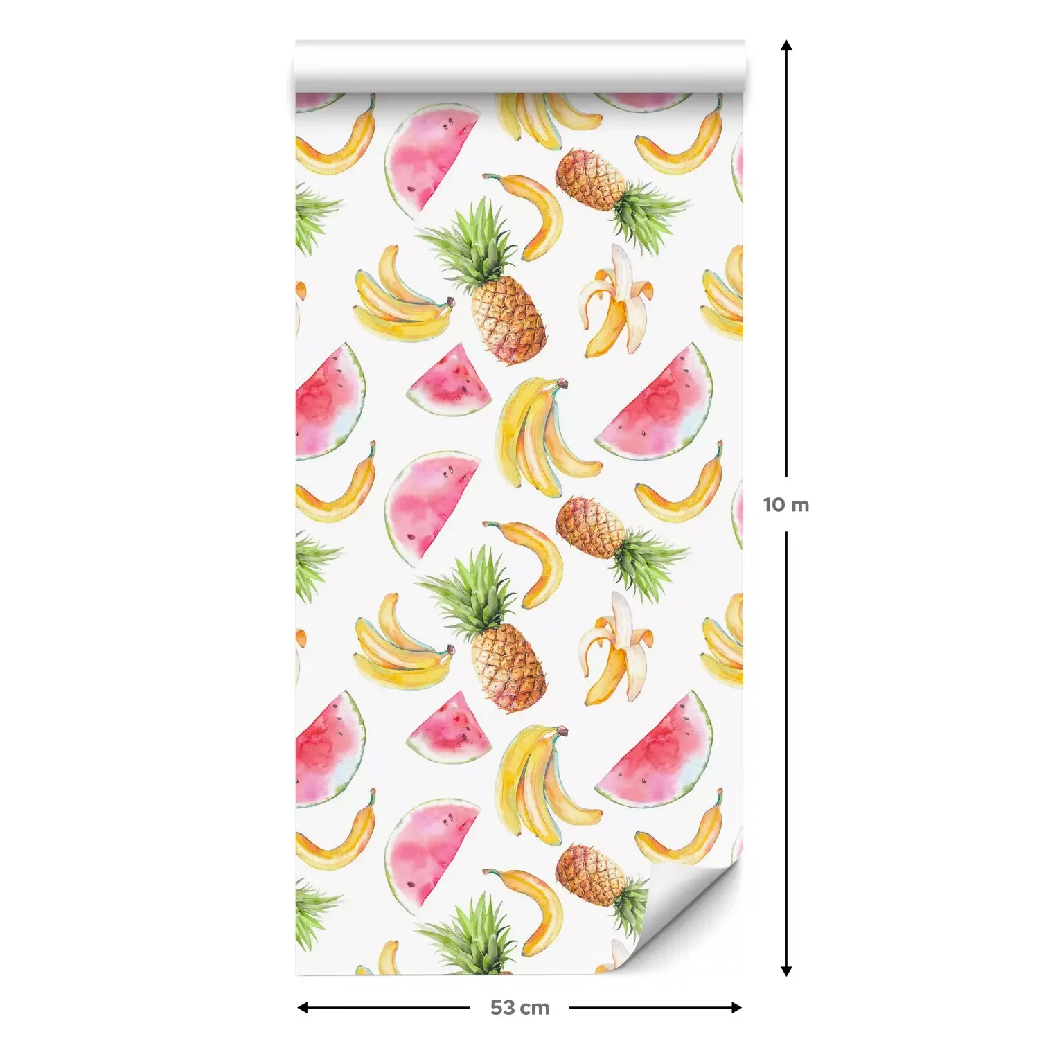 Eine Standard-Tapetenrolle hat die Maße 0,53 m x 10 m und deckt eine Wandfläche von etwa 5 m² ab.
