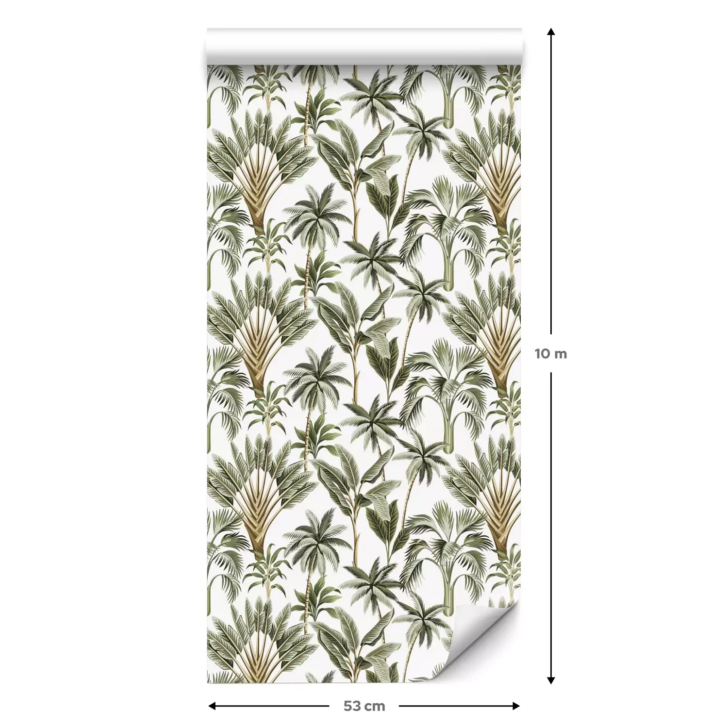 Eine Standard-Tapetenrolle hat die Maße 0,53 m x 10 m und deckt eine Wandfläche von etwa 5 m² ab.