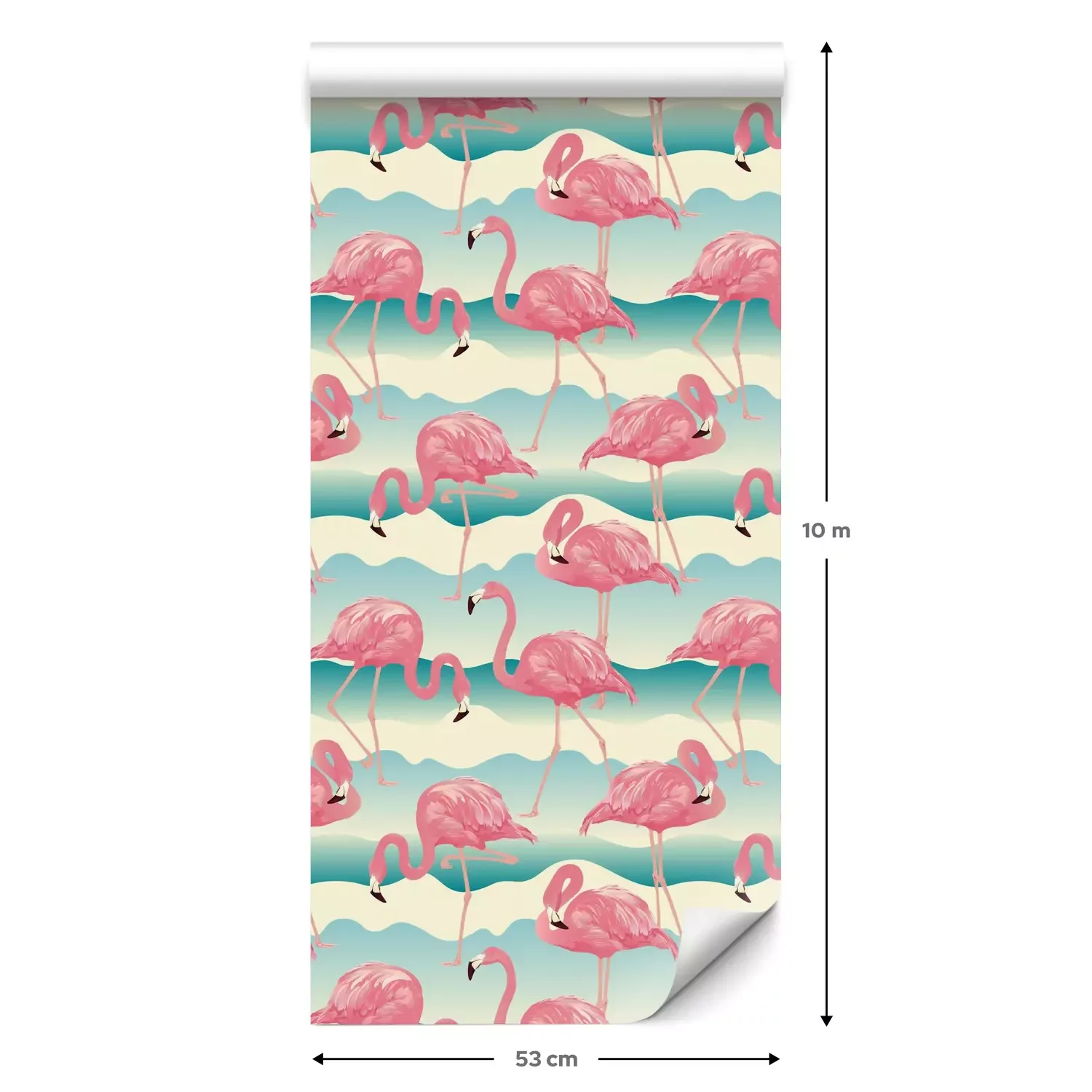 Eine Standard-Tapetenrolle hat die Maße 0,53 m x 10 m und deckt eine Wandfläche von etwa 5 m² ab.