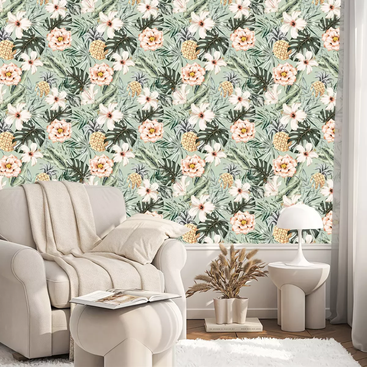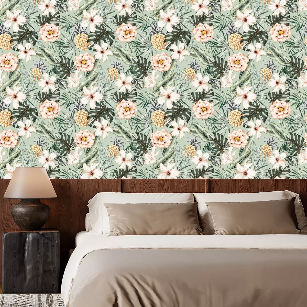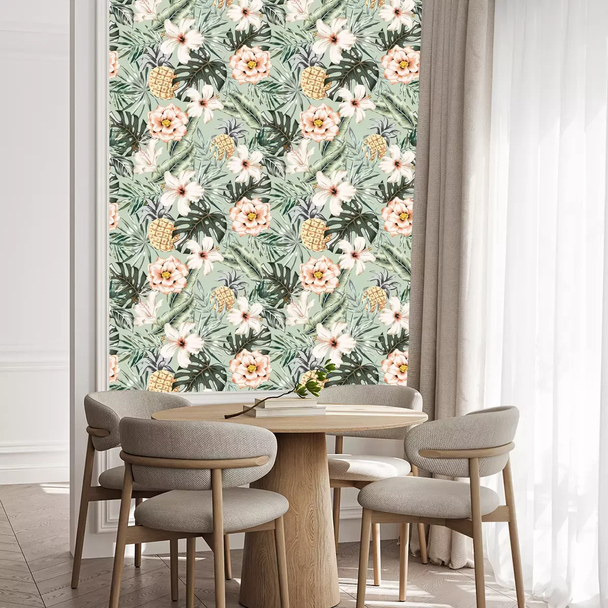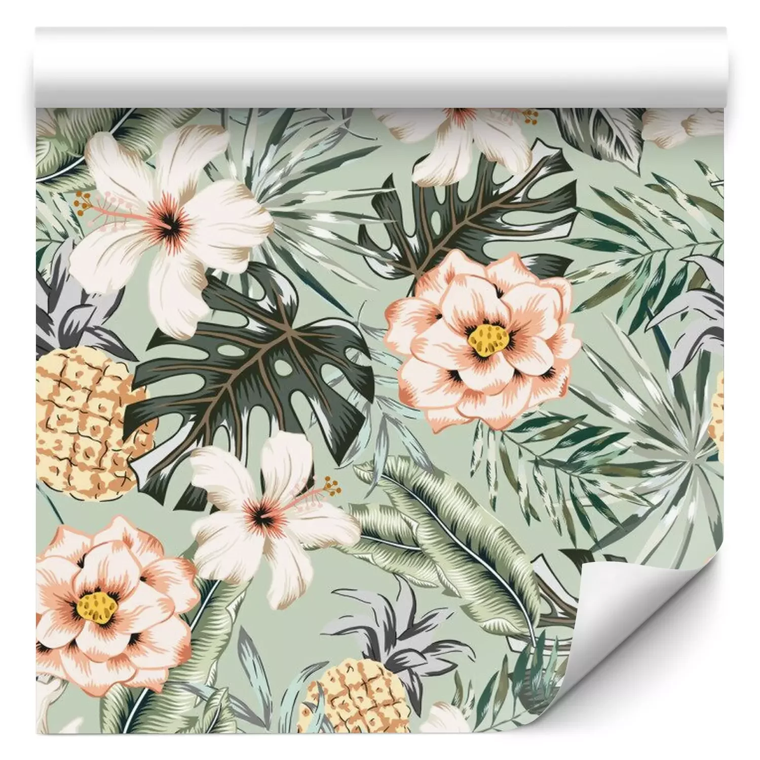 Tapete Tropisches Blumenmuster mit Monstera- und Bananenblättern