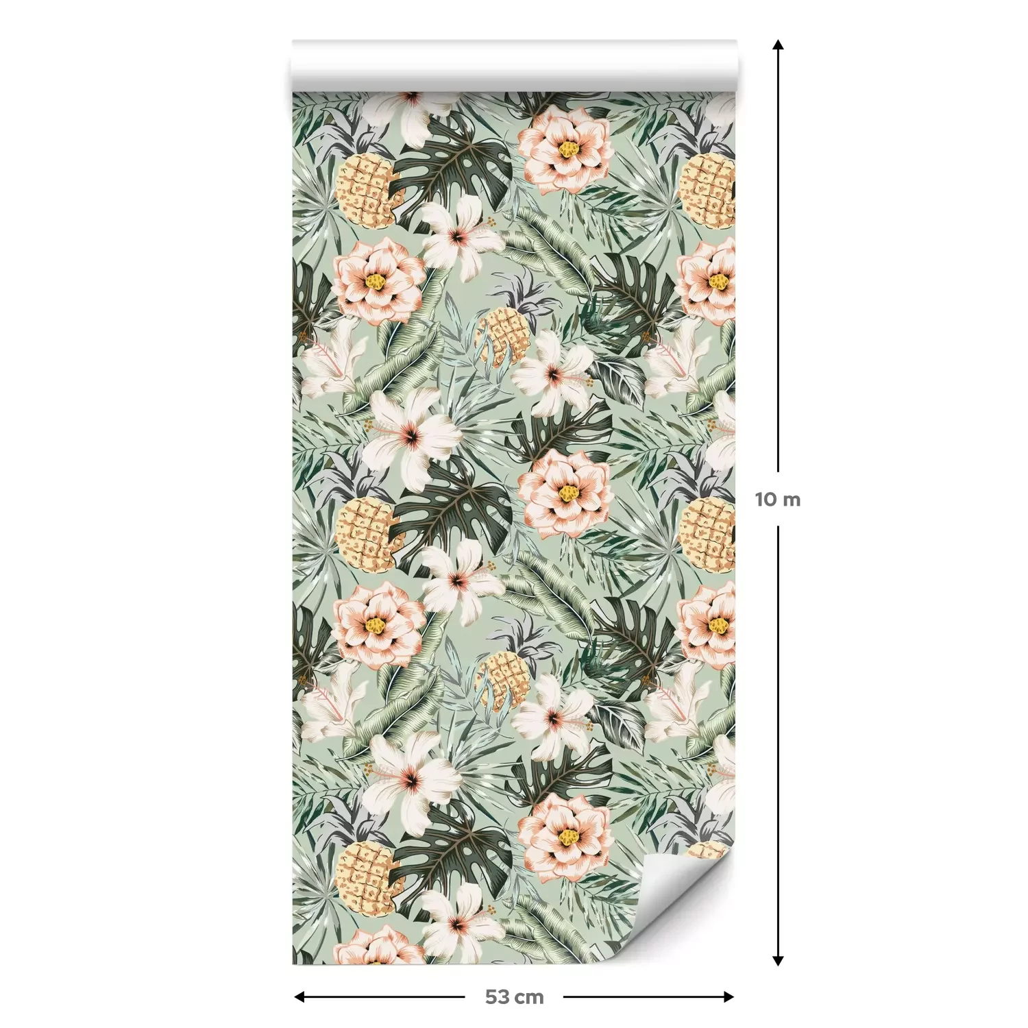 Eine Standard-Tapetenrolle hat die Maße 0,53 m x 10 m und deckt eine Wandfläche von etwa 5 m² ab.