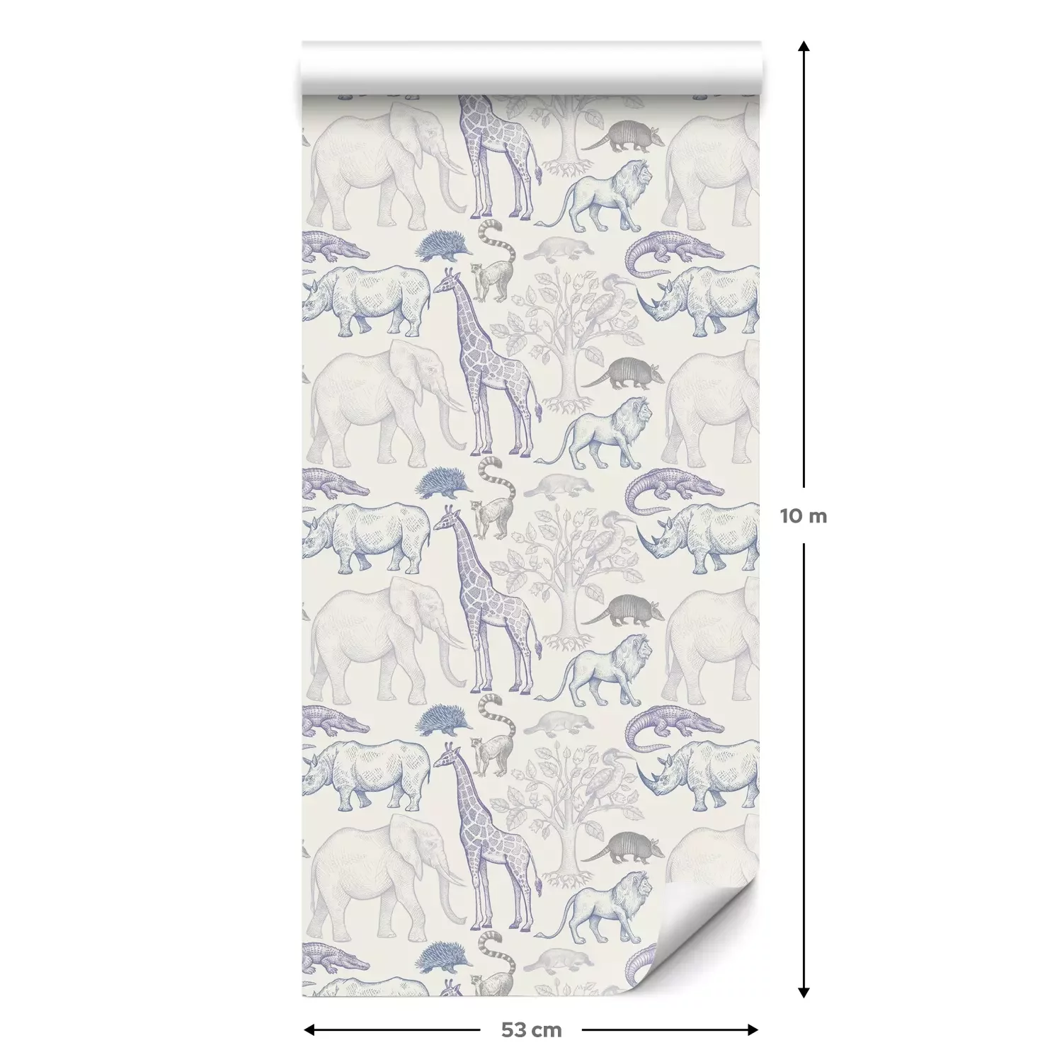 Eine Standard-Tapetenrolle hat die Maße 0,53 m x 10 m und deckt eine Wandfläche von etwa 5 m² ab.