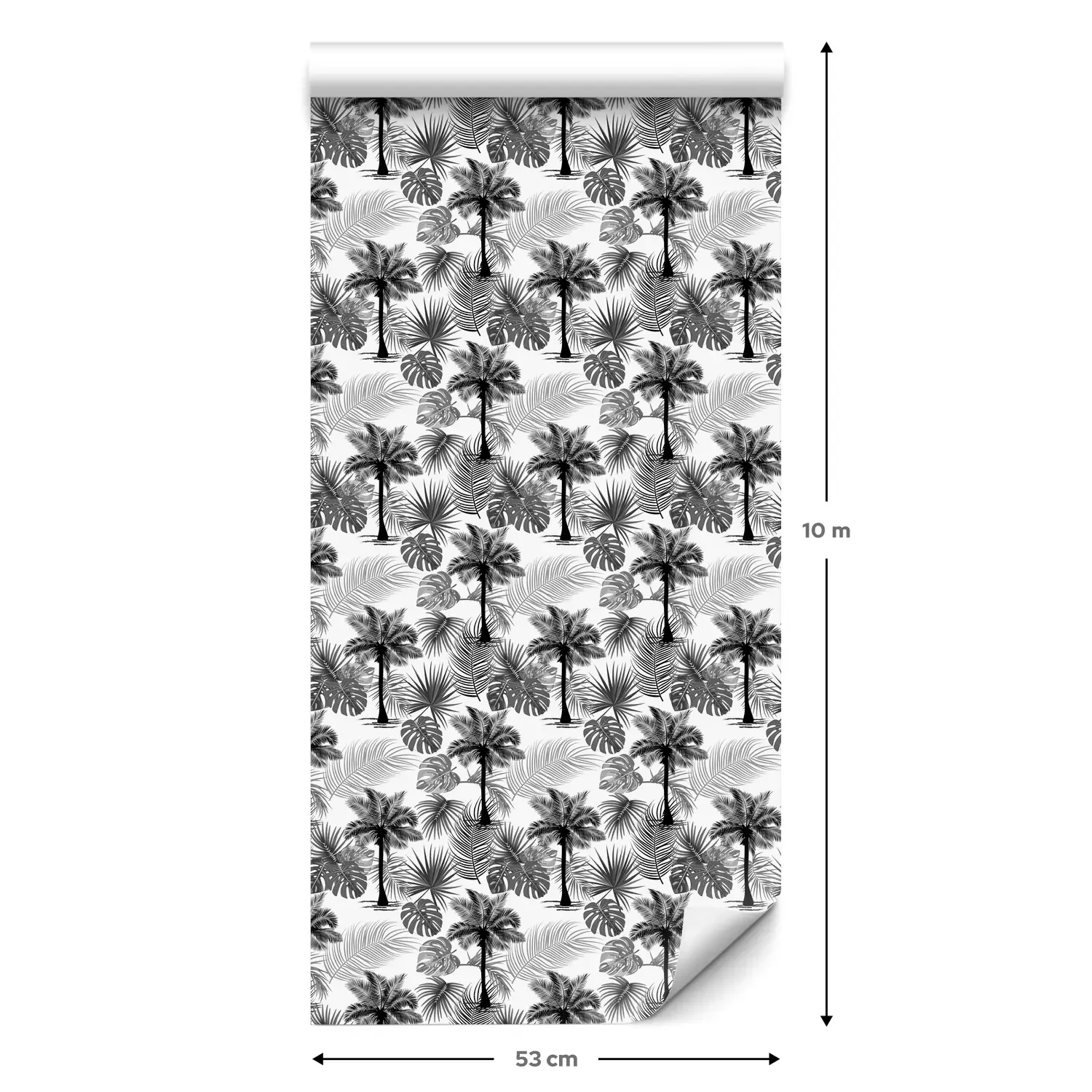 Eine Standard-Tapetenrolle hat die Maße 0,53 m x 10 m und deckt eine Wandfläche von etwa 5 m² ab.