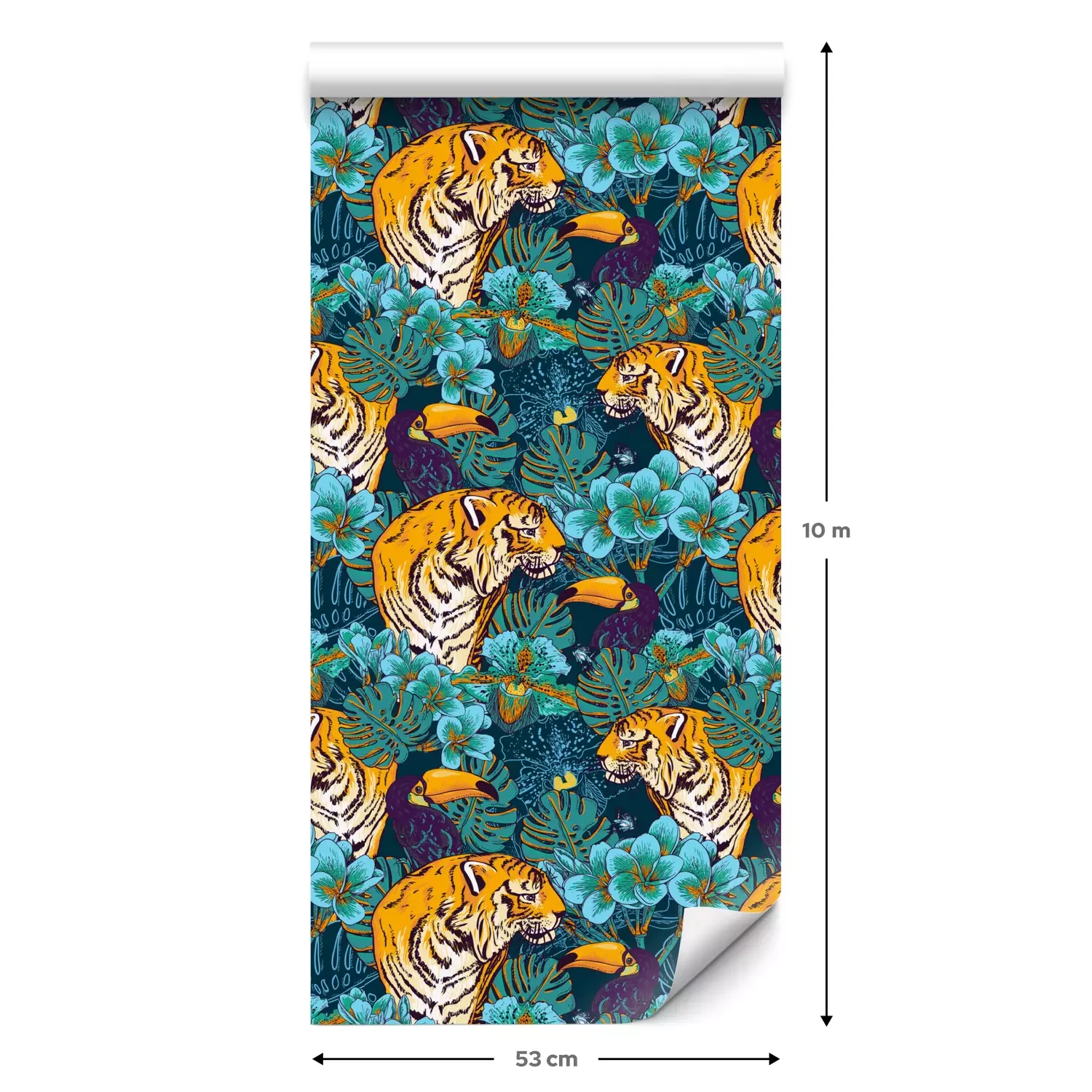 Eine Standard-Tapetenrolle hat die Maße 0,53 m x 10 m und deckt eine Wandfläche von etwa 5 m² ab.
