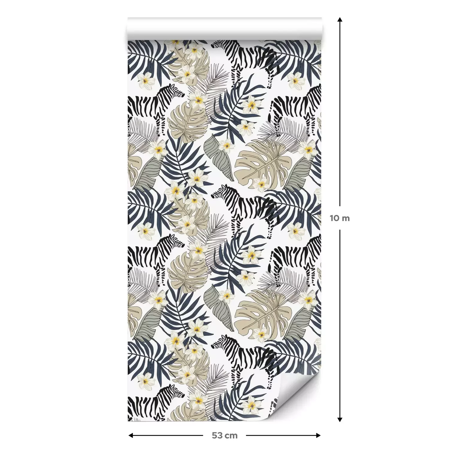 Eine Standard-Tapetenrolle hat die Maße 0,53 m x 10 m und deckt eine Wandfläche von etwa 5 m² ab.