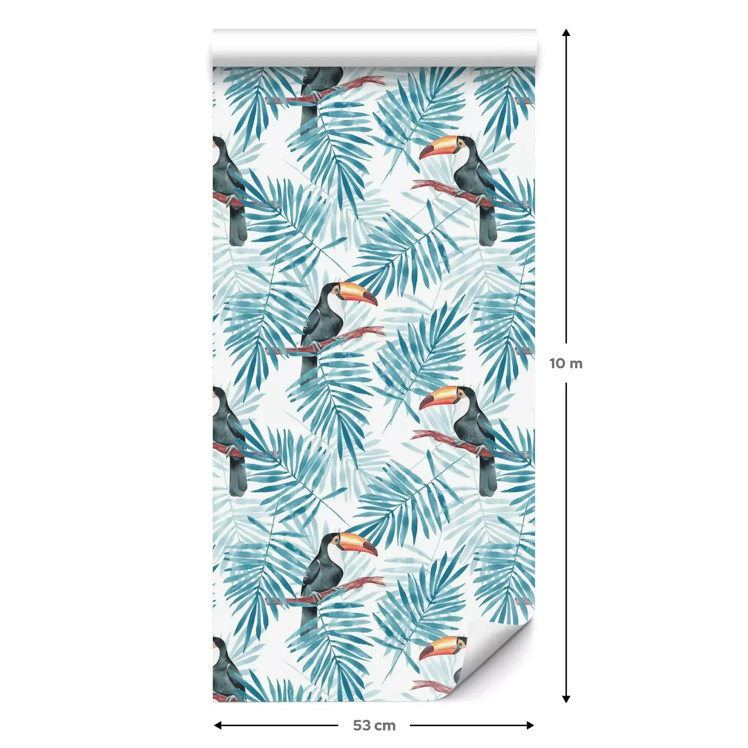Eine Standard-Tapetenrolle hat die Maße 0,53 m x 10 m und deckt eine Wandfläche von etwa 5 m² ab.