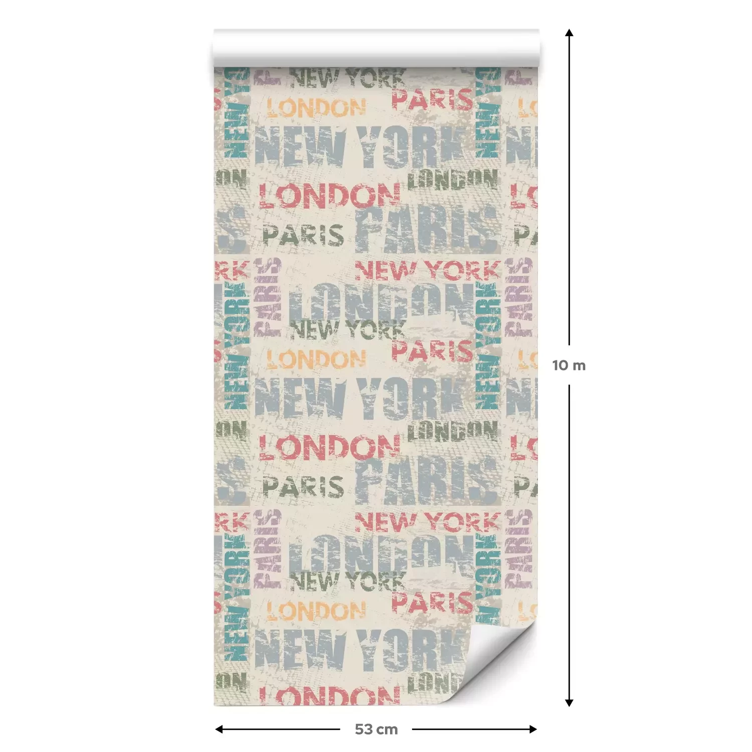 Eine Standard-Tapetenrolle hat die Maße 0,53 m x 10 m und deckt eine Wandfläche von etwa 5 m² ab.