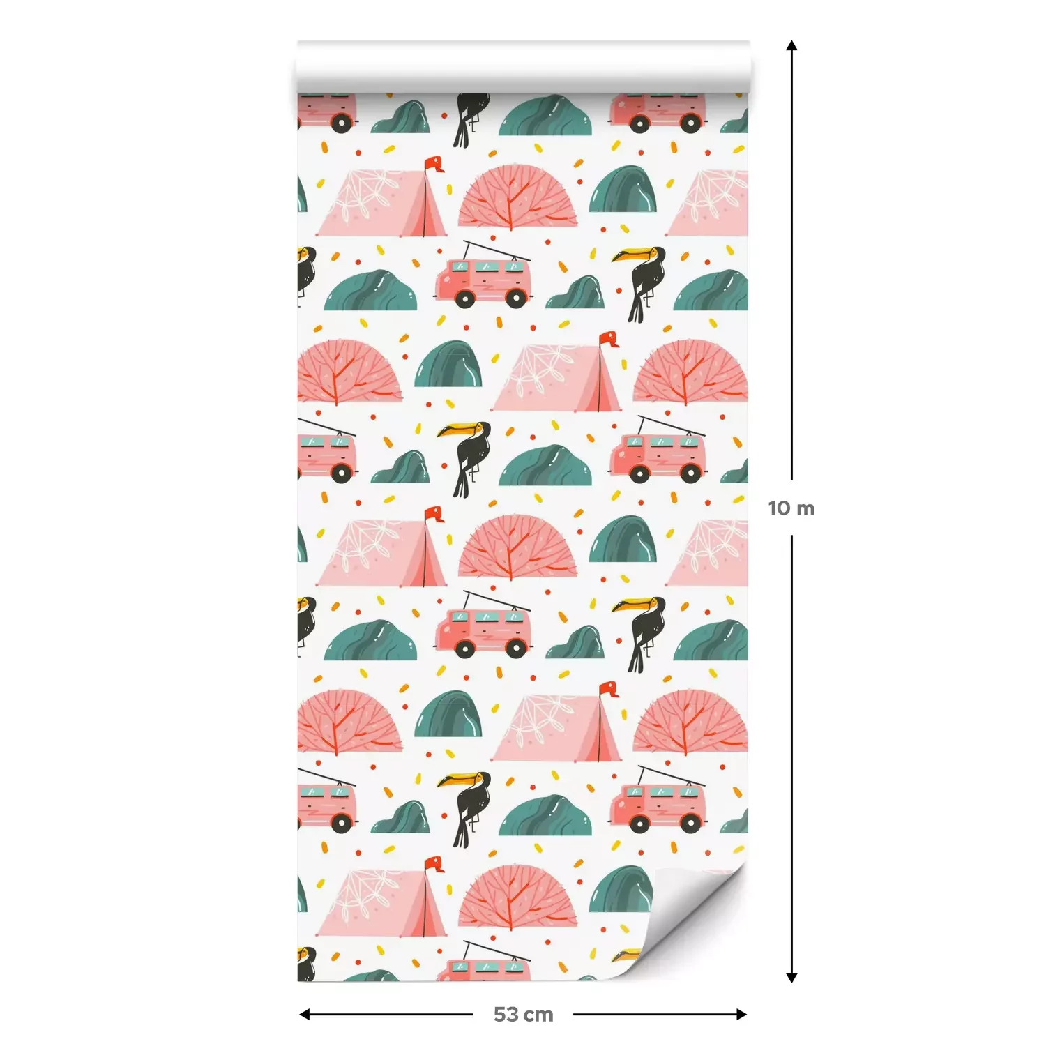 Eine Standard-Tapetenrolle hat die Maße 0,53 m x 10 m und deckt eine Wandfläche von etwa 5 m² ab.