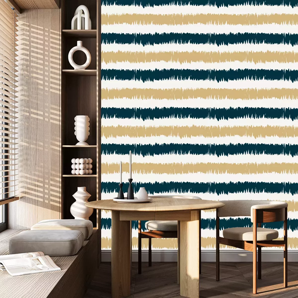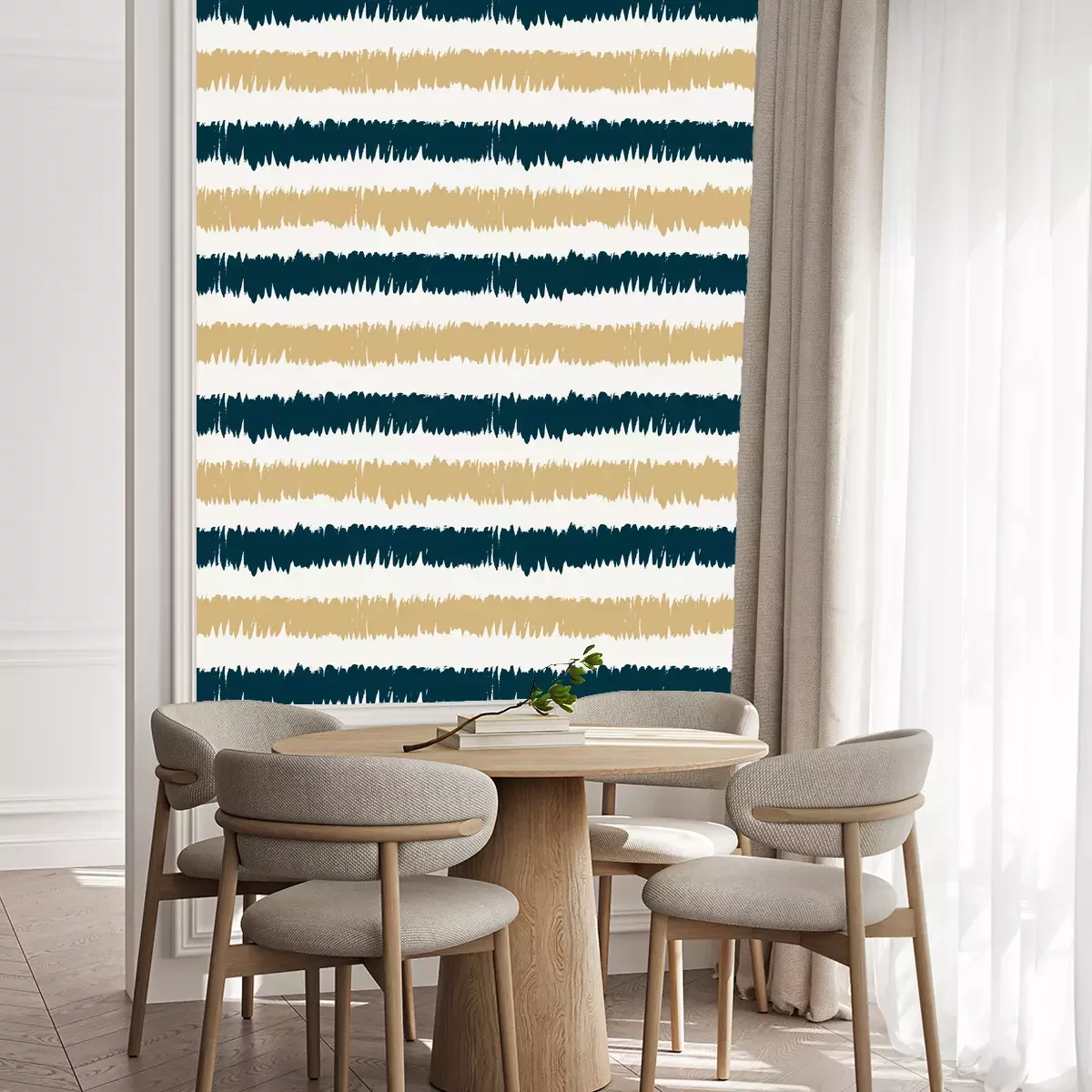 Die Tapete zeichnet sich durch ein sich wiederholendes Muster aus, das ein rhythmisches Design erzeugt. Als Trägermaterial wird hier Vlies verwendet. Sie wird in Rollen mit den standardisierten Maßen 10 m x 53 cm verkauft. Eine Fototapete ist eine spezielle Art von Tapete, auf der ein Foto oder ein realistisches Bild (z.B. eine Landschaft oder eine Stadtansicht) großflächig aufgedruckt ist. Sie wird nicht in Standardrollen verkauft, sondern in Bahnen, die auf die Abmessungen einer bestimmten Wand zugeschnitten sind. So passt das gesamte Motiv perfekt darauf. Zudem können Sie das Material wählen, aus dem die Tapete hergestellt werden soll.