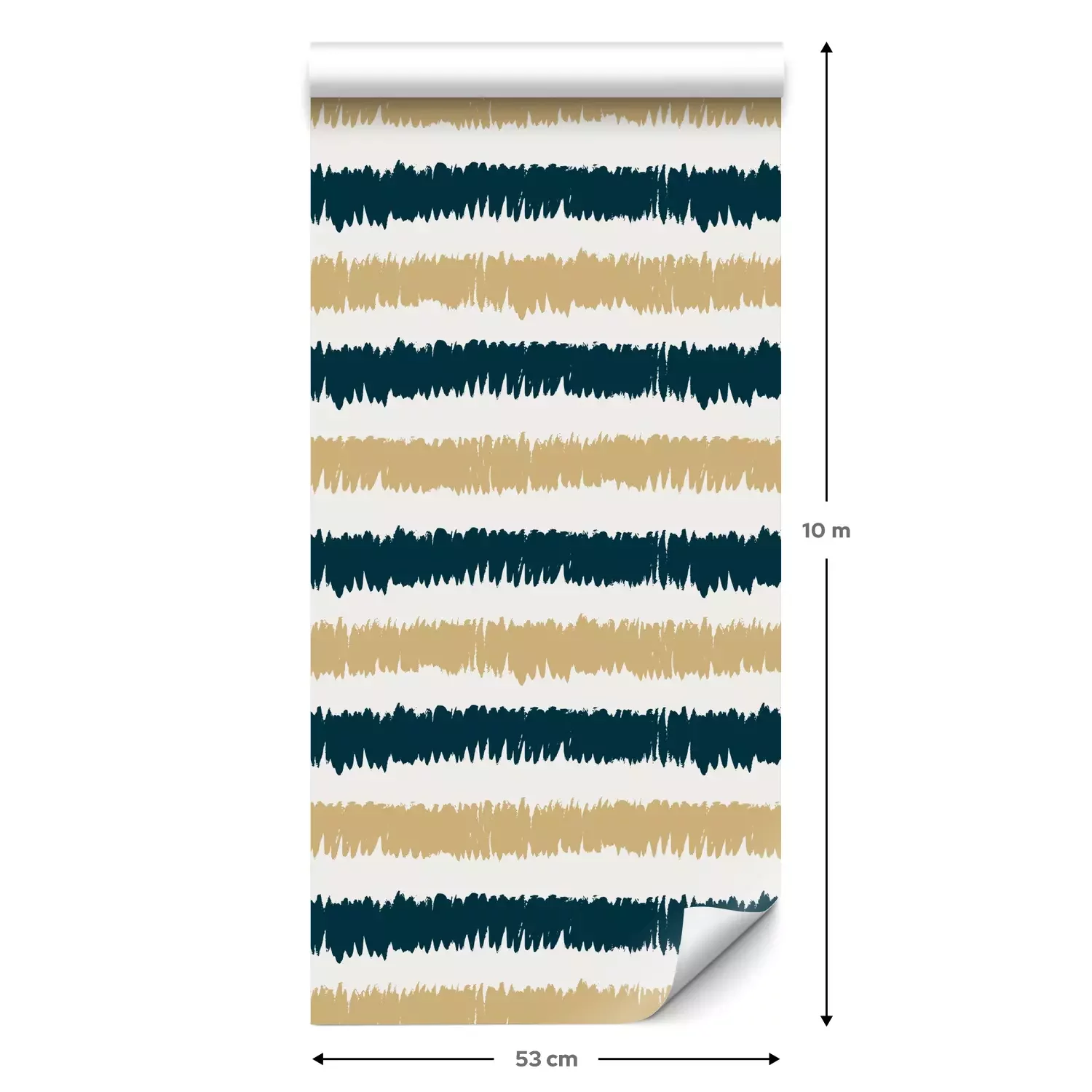 Eine Standard-Tapetenrolle hat die Maße 0,53 m x 10 m und deckt eine Wandfläche von etwa 5 m² ab.