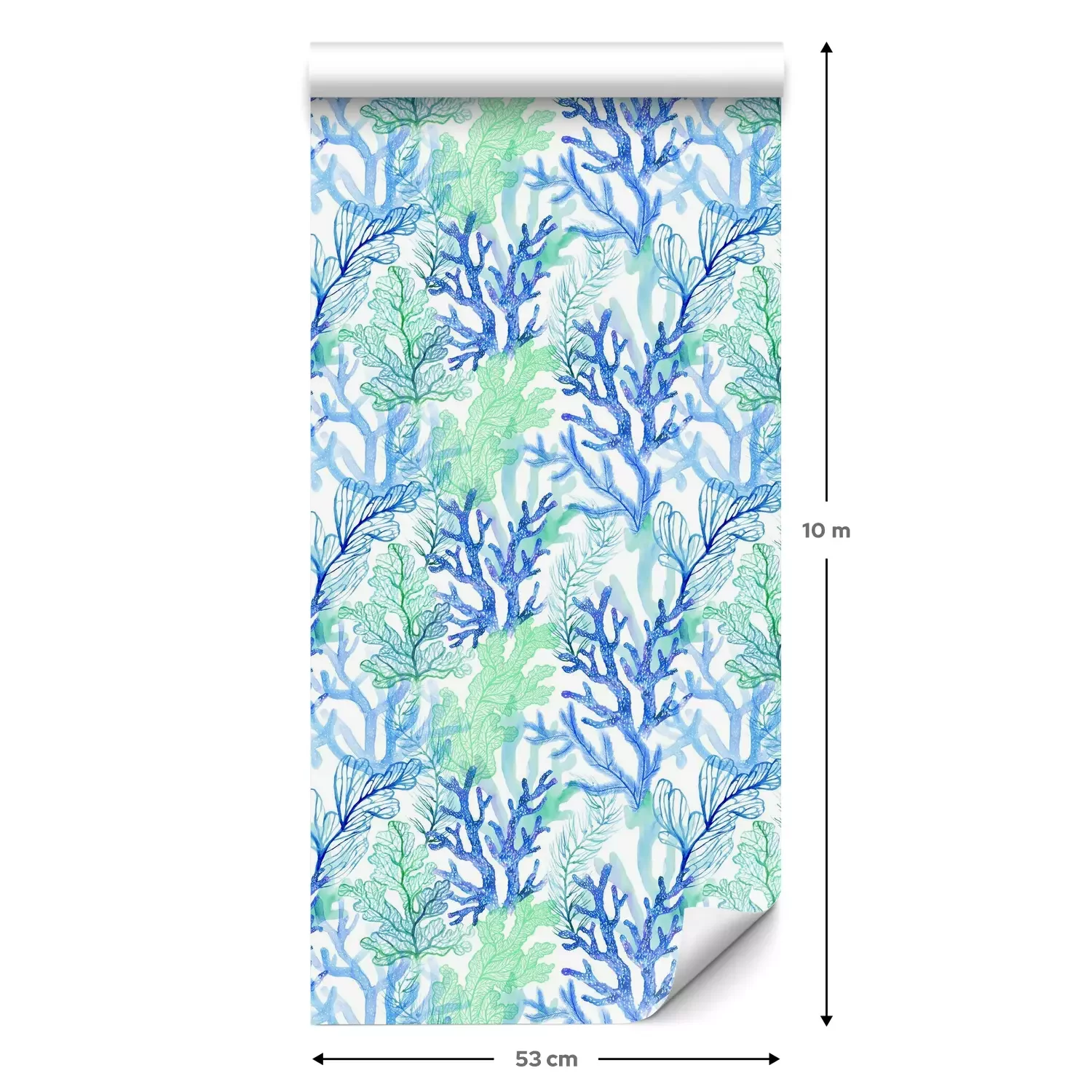 Eine Standard-Tapetenrolle hat die Maße 0,53 m x 10 m und deckt eine Wandfläche von etwa 5 m² ab.