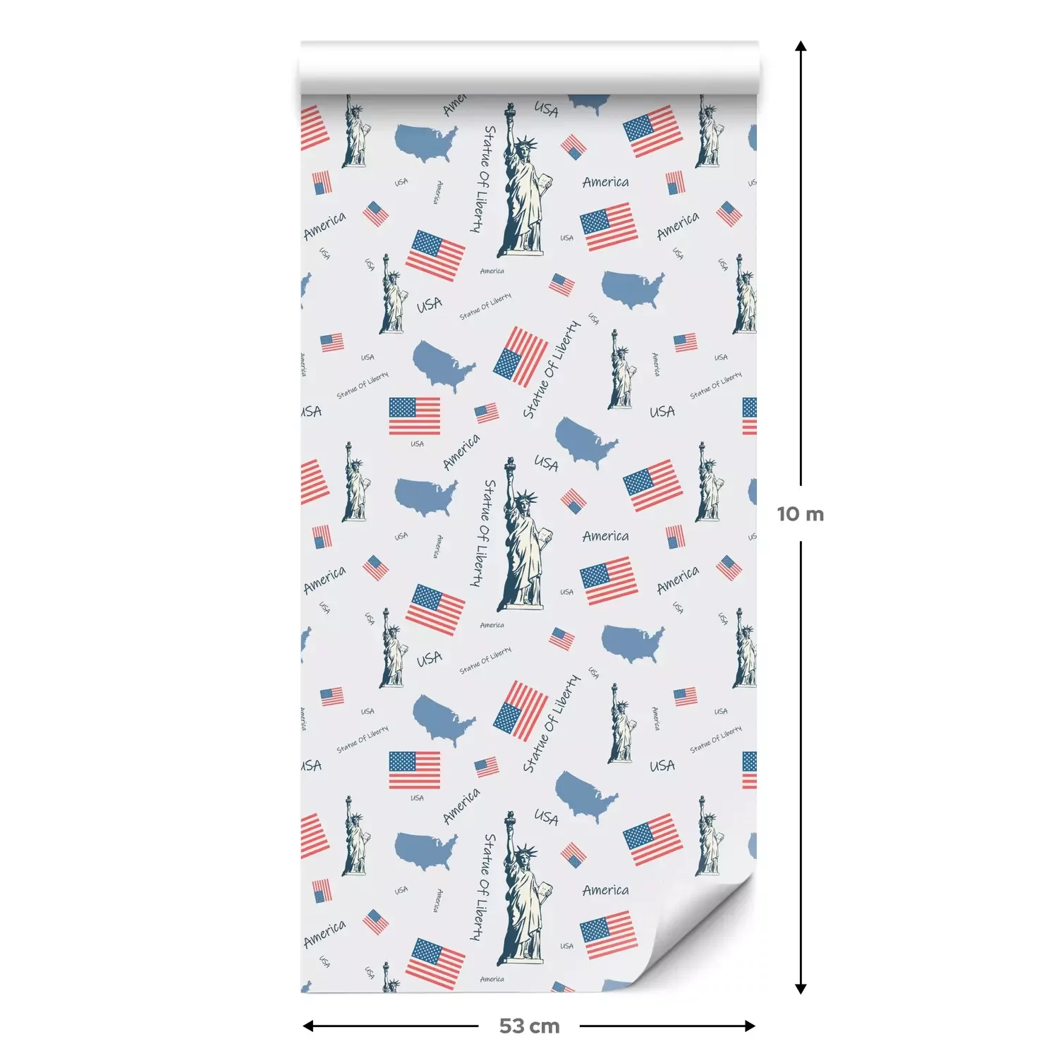 Eine Standard-Tapetenrolle hat die Maße 0,53 m x 10 m und deckt eine Wandfläche von etwa 5 m² ab.