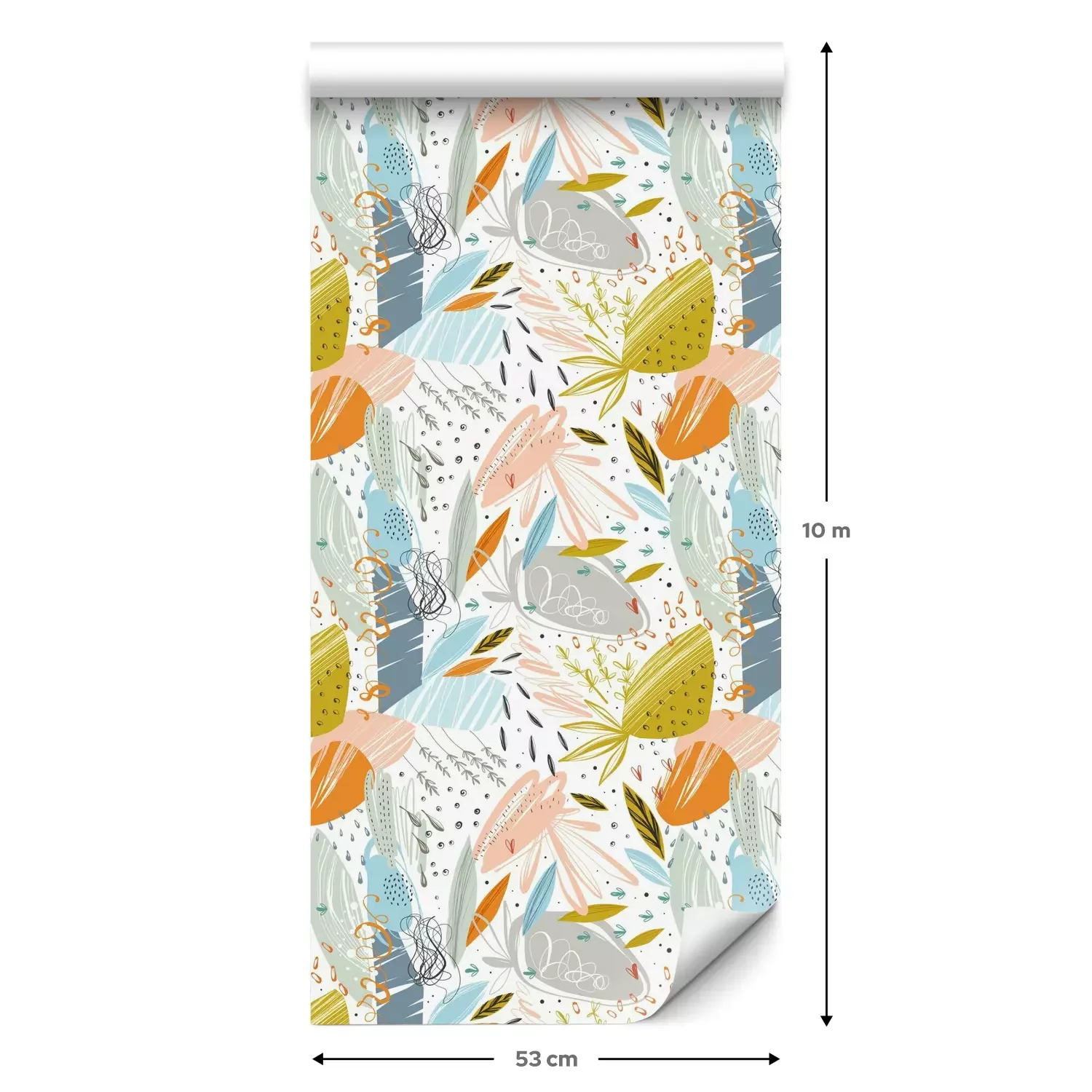 Eine Standard-Tapetenrolle hat die Maße 0,53 m x 10 m und deckt eine Wandfläche von etwa 5 m² ab.