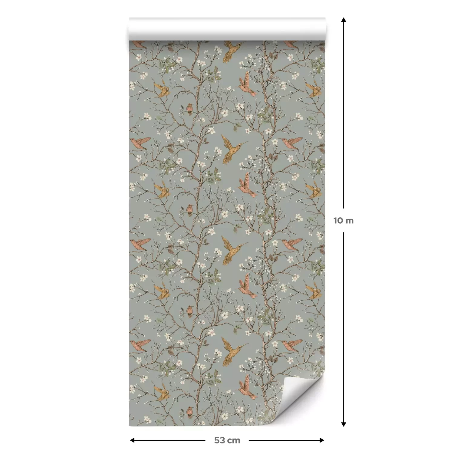 Eine Standard-Tapetenrolle hat die Maße 0,53 m x 10 m und deckt eine Wandfläche von etwa 5 m² ab.