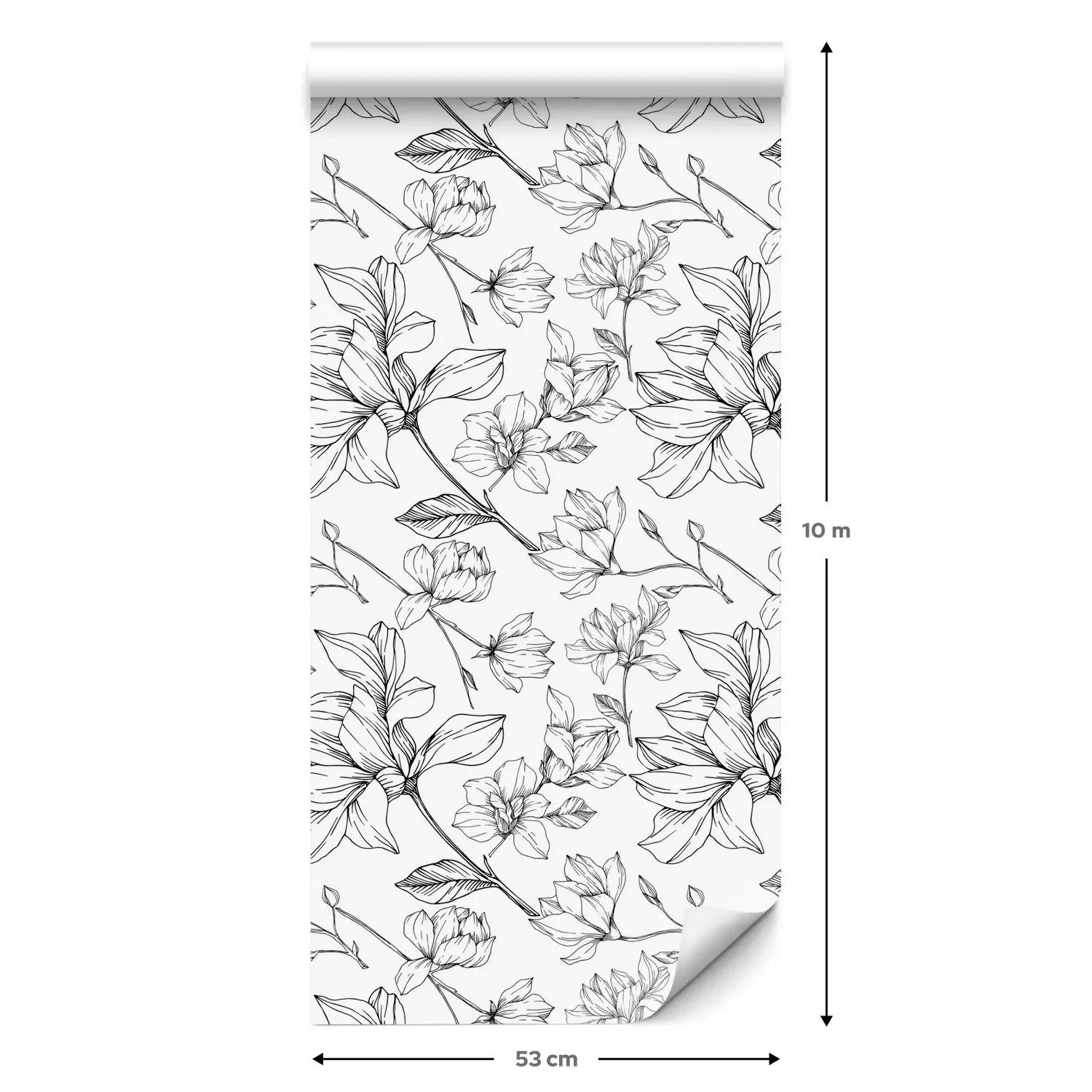 Eine Standard-Tapetenrolle hat die Maße 0,53 m x 10 m und deckt eine Wandfläche von etwa 5 m² ab.