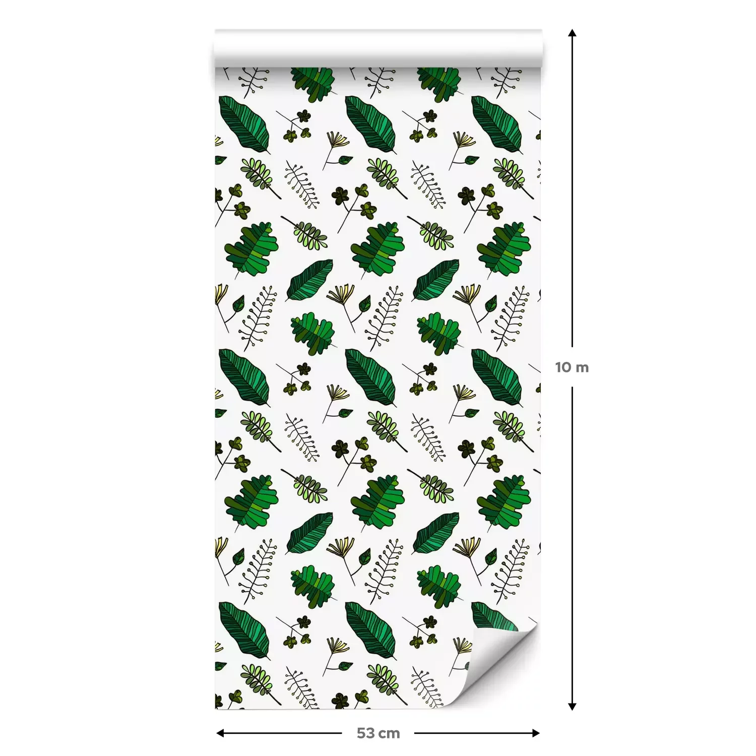 Eine Standard-Tapetenrolle hat die Maße 0,53 m x 10 m und deckt eine Wandfläche von etwa 5 m² ab.