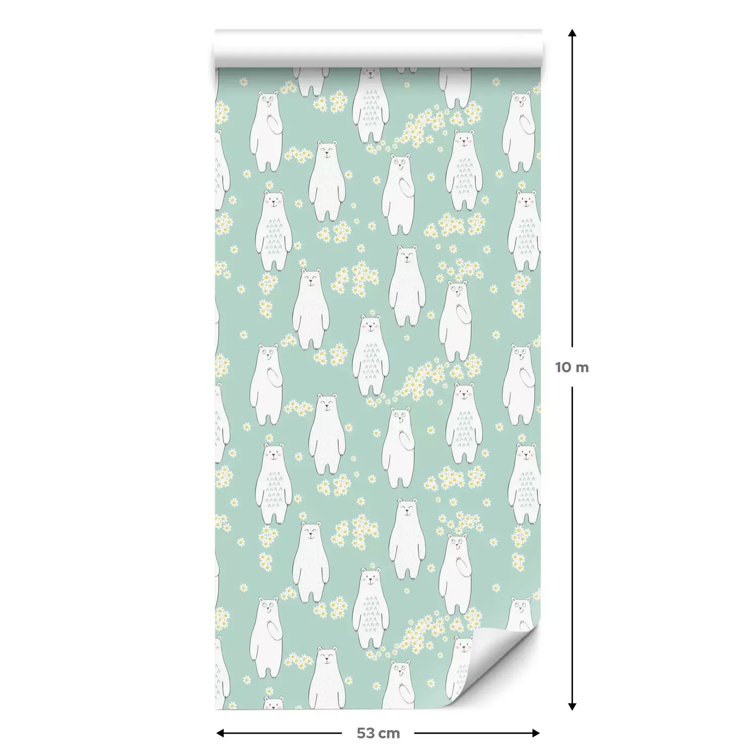 Eine Standard-Tapetenrolle hat die Maße 0,53 m x 10 m und deckt eine Wandfläche von etwa 5 m² ab.