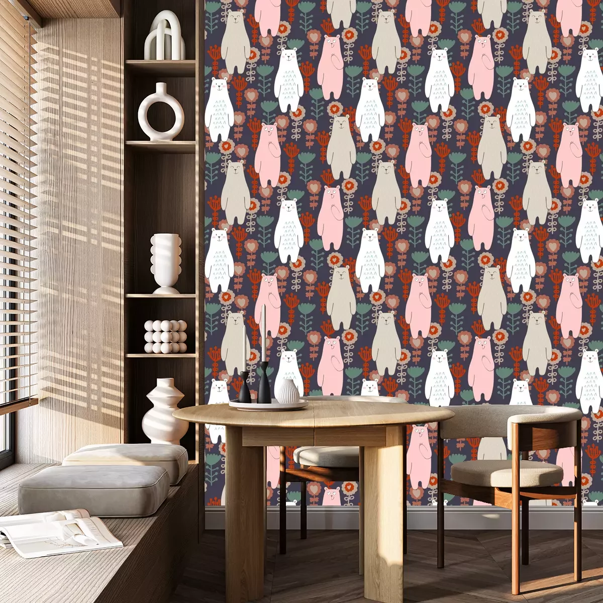 Die Tapete zeichnet sich durch ein sich wiederholendes Muster aus, das ein rhythmisches Design erzeugt. Als Trägermaterial wird hier Vlies verwendet. Sie wird in Rollen mit den standardisierten Maßen 10 m x 53 cm verkauft. Eine Fototapete ist eine spezielle Art von Tapete, auf der ein Foto oder ein realistisches Bild (z.B. eine Landschaft oder eine Stadtansicht) großflächig aufgedruckt ist. Sie wird nicht in Standardrollen verkauft, sondern in Bahnen, die auf die Abmessungen einer bestimmten Wand zugeschnitten sind. So passt das gesamte Motiv perfekt darauf. Zudem können Sie das Material wählen, aus dem die Tapete hergestellt werden soll.