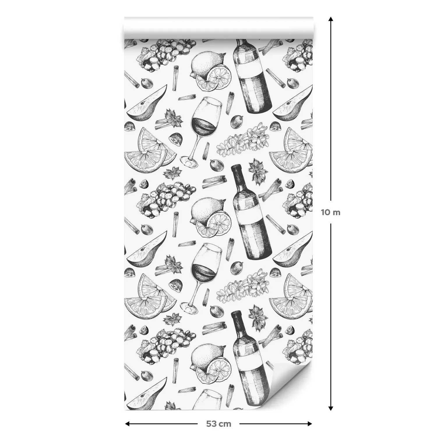 Eine Standard-Tapetenrolle hat die Maße 0,53 m x 10 m und deckt eine Wandfläche von etwa 5 m² ab.