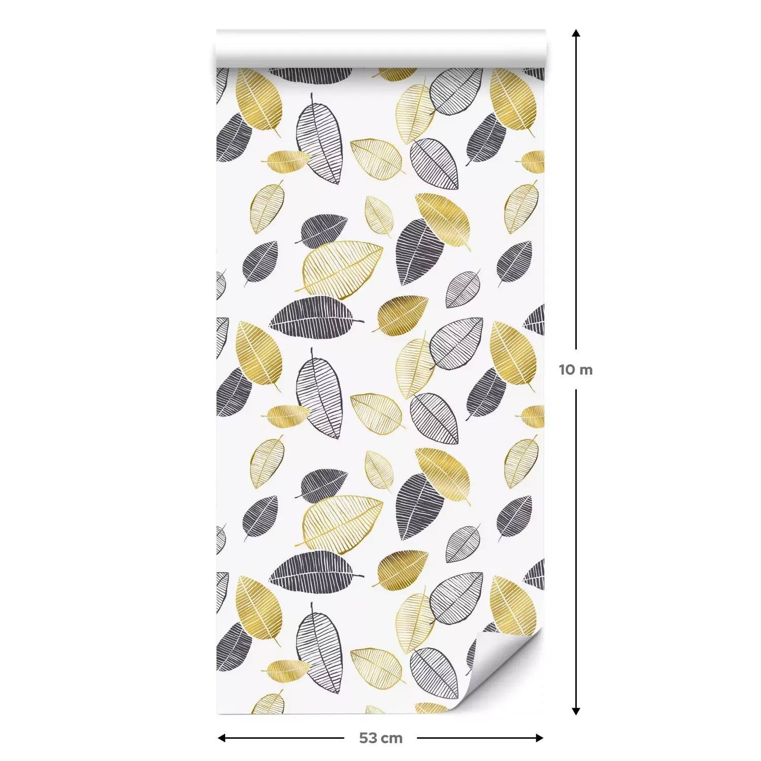 Eine Standard-Tapetenrolle hat die Maße 0,53 m x 10 m und deckt eine Wandfläche von etwa 5 m² ab.