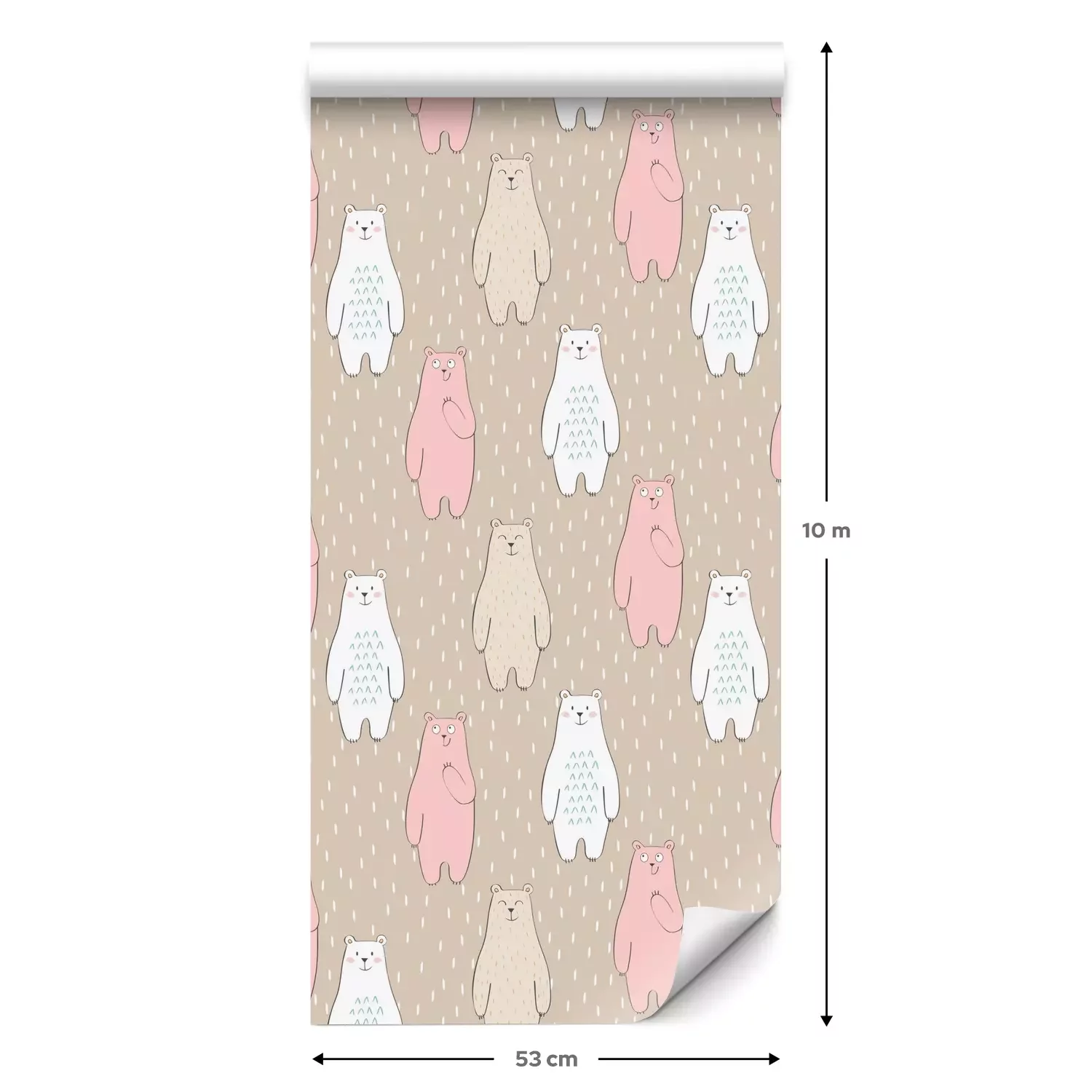 Eine Standard-Tapetenrolle hat die Maße 0,53 m x 10 m und deckt eine Wandfläche von etwa 5 m² ab.