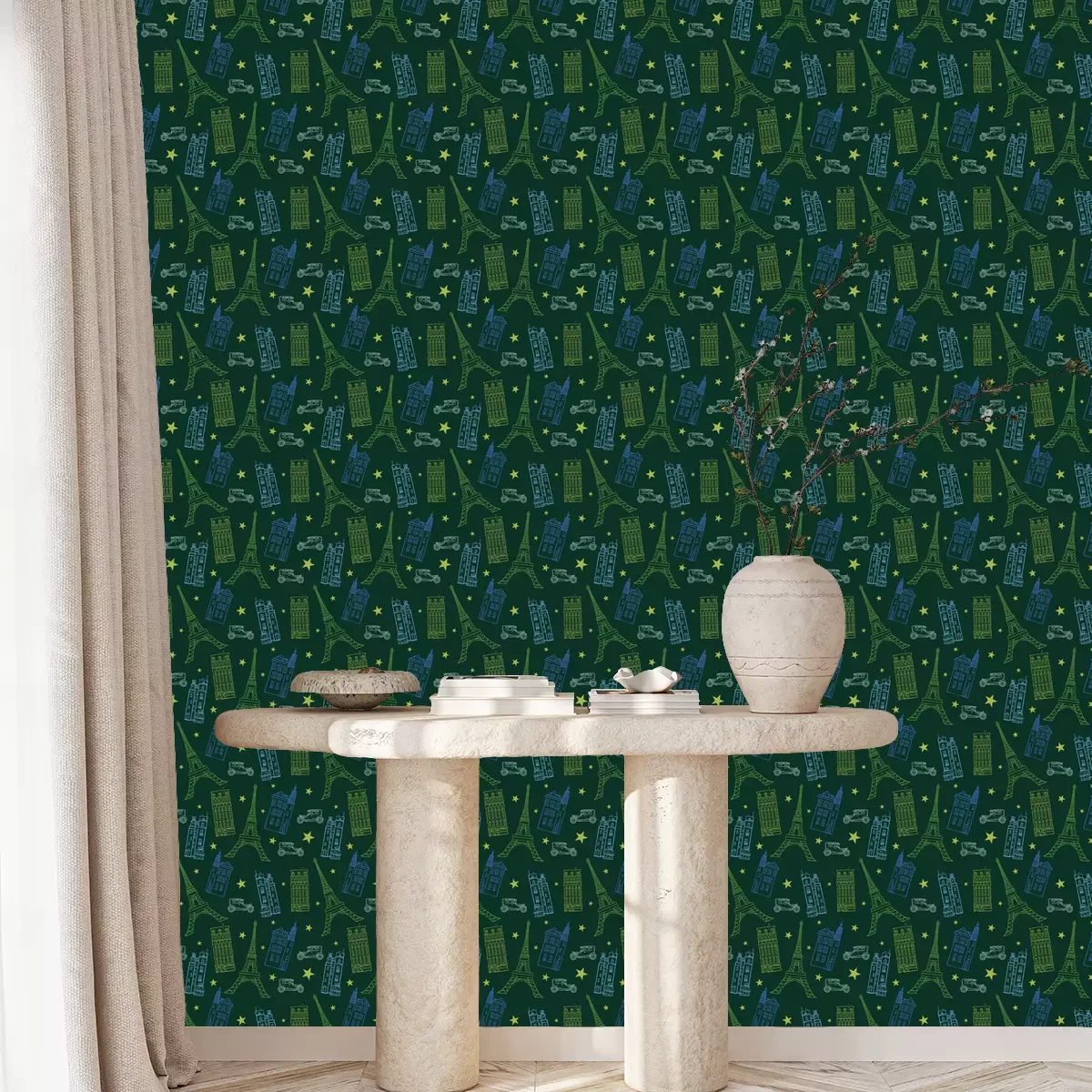 Die Tapete zeichnet sich durch ein sich wiederholendes Muster aus, das ein rhythmisches Design erzeugt. Als Trägermaterial wird hier Vlies verwendet. Sie wird in Rollen mit den standardisierten Maßen 10 m x 53 cm verkauft. Eine Fototapete ist eine spezielle Art von Tapete, auf der ein Foto oder ein realistisches Bild (z.B. eine Landschaft oder eine Stadtansicht) großflächig aufgedruckt ist. Sie wird nicht in Standardrollen verkauft, sondern in Bahnen, die auf die Abmessungen einer bestimmten Wand zugeschnitten sind. So passt das gesamte Motiv perfekt darauf. Zudem können Sie das Material wählen, aus dem die Tapete hergestellt werden soll.