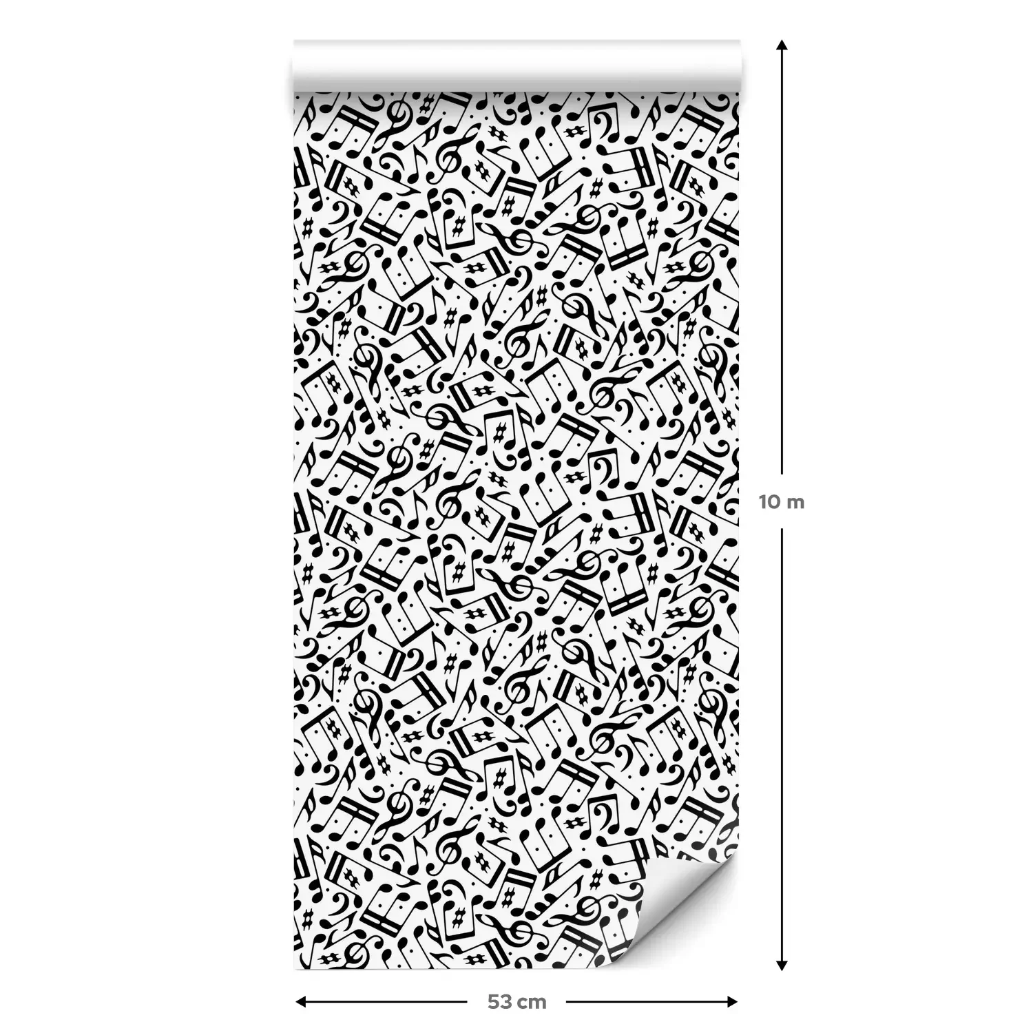 Eine Standard-Tapetenrolle hat die Maße 0,53 m x 10 m und deckt eine Wandfläche von etwa 5 m² ab.