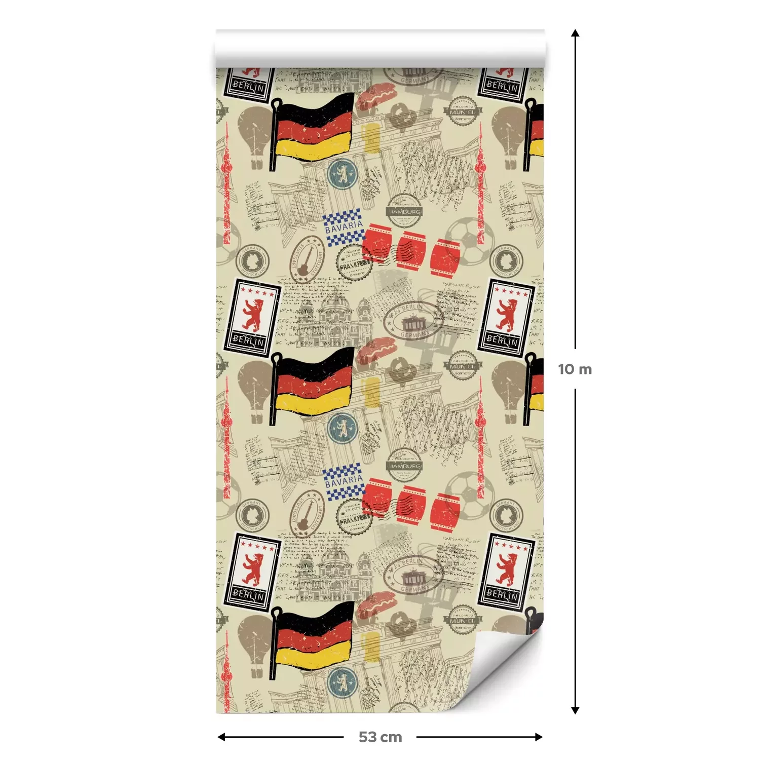 Eine Standard-Tapetenrolle hat die Maße 0,53 m x 10 m und deckt eine Wandfläche von etwa 5 m² ab.