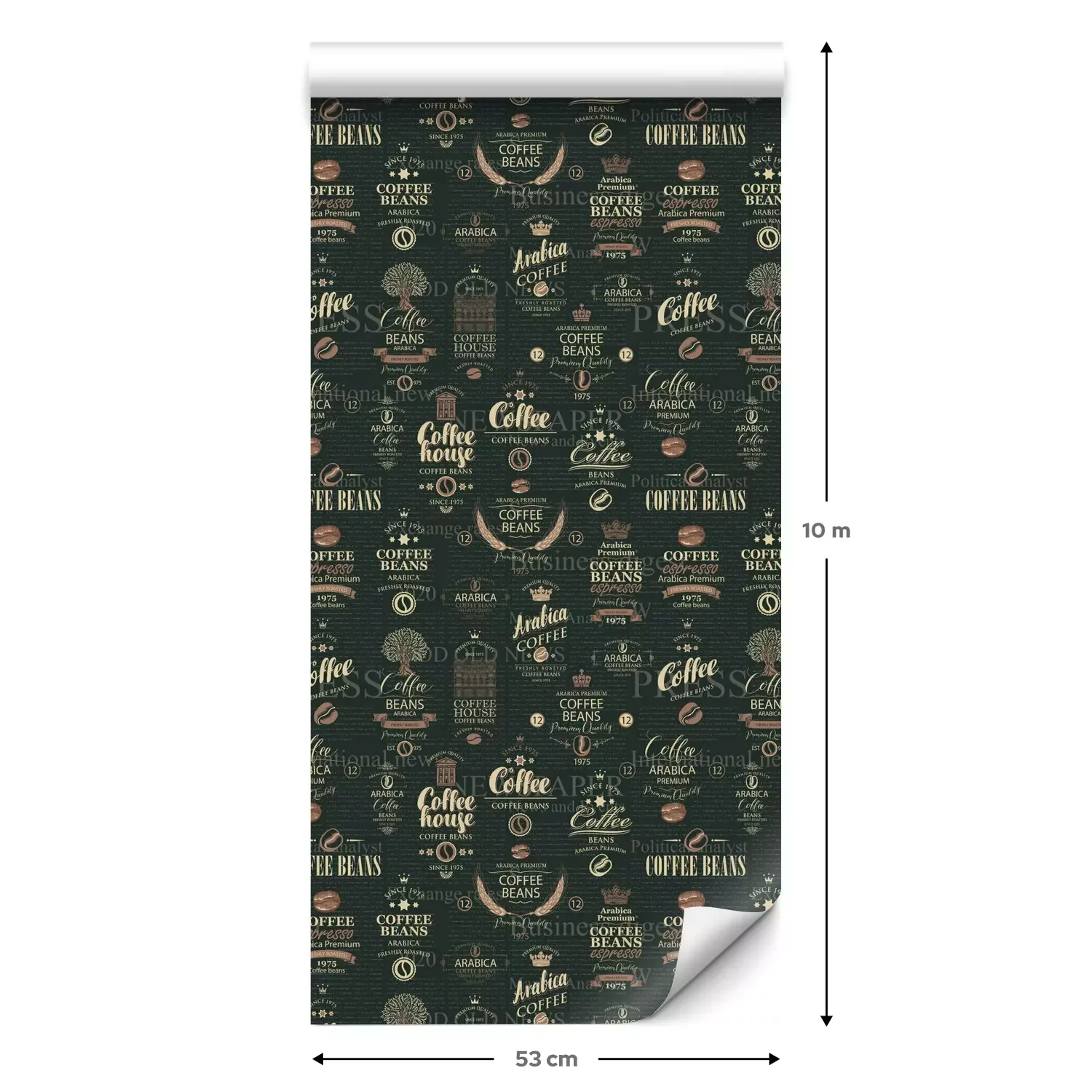 Eine Standard-Tapetenrolle hat die Maße 0,53 m x 10 m und deckt eine Wandfläche von etwa 5 m² ab.