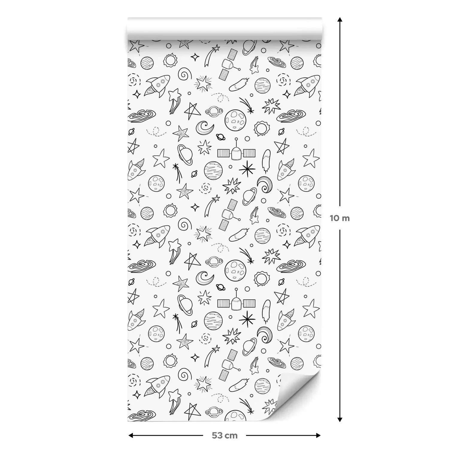 Eine Standard-Tapetenrolle hat die Maße 0,53 m x 10 m und deckt eine Wandfläche von etwa 5 m² ab.