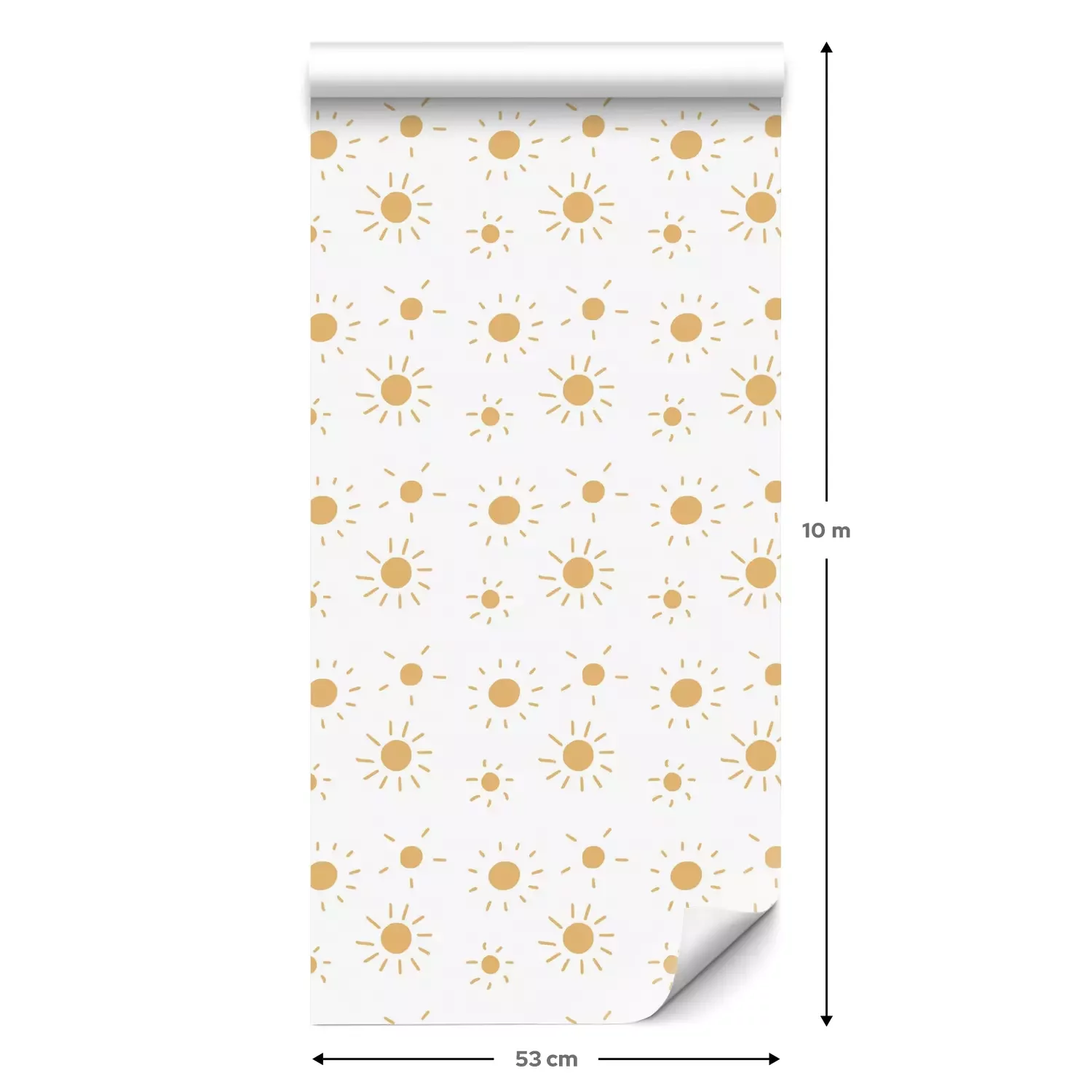 Eine Standard-Tapetenrolle hat die Maße 0,53 m x 10 m und deckt eine Wandfläche von etwa 5 m² ab.