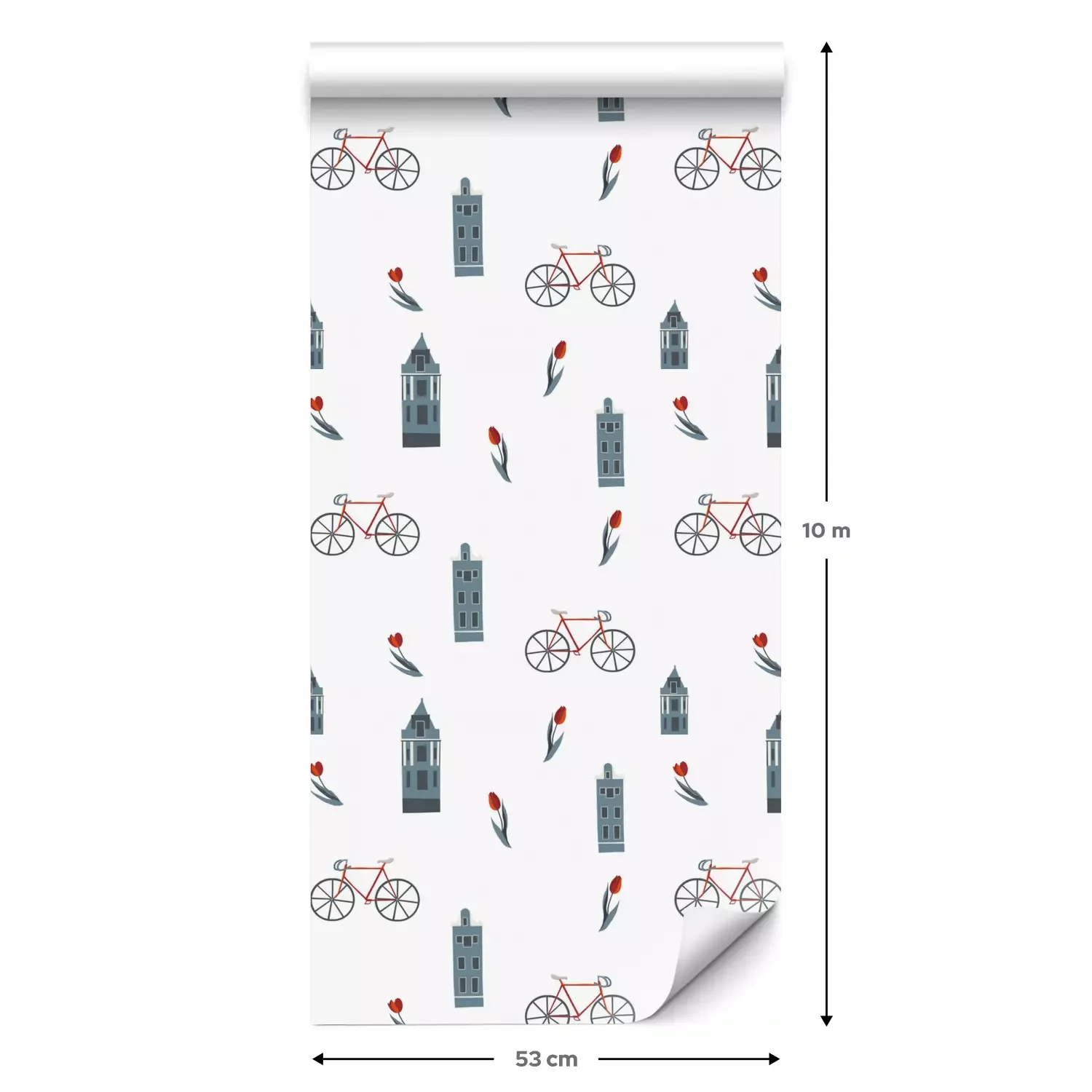 Eine Standard-Tapetenrolle hat die Maße 0,53 m x 10 m und deckt eine Wandfläche von etwa 5 m² ab.