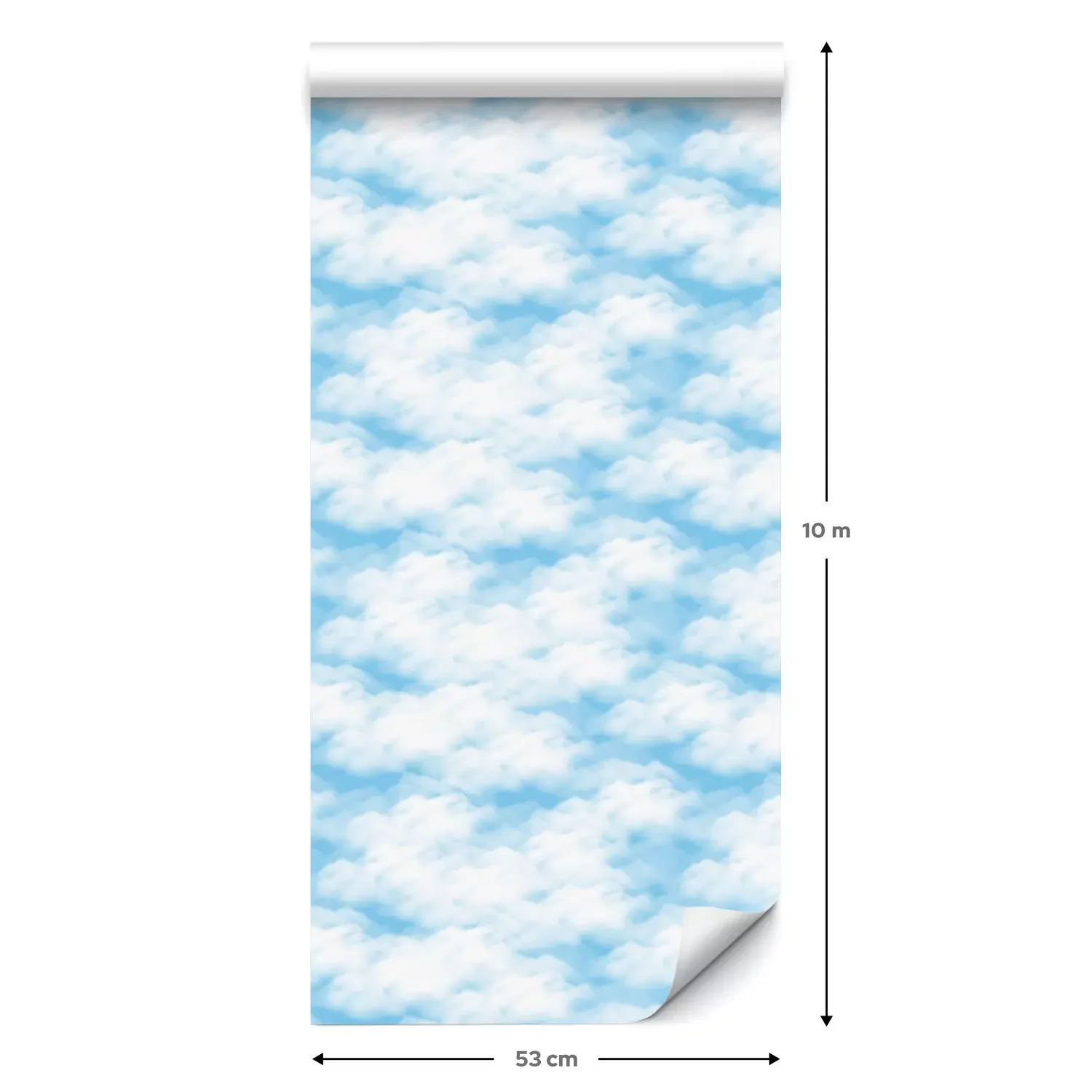 Eine Standard-Tapetenrolle hat die Maße 0,53 m x 10 m und deckt eine Wandfläche von etwa 5 m² ab.