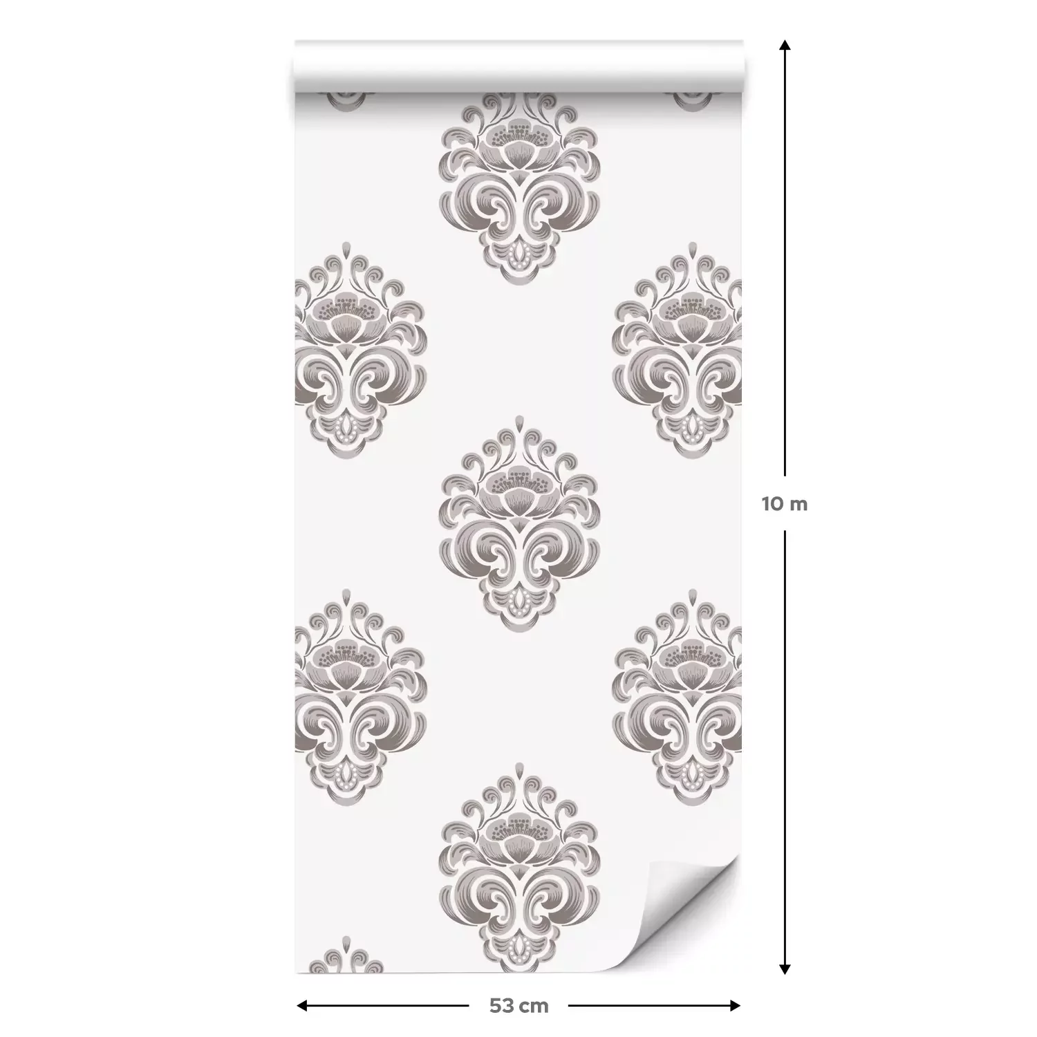 Eine Standard-Tapetenrolle hat die Maße 0,53 m x 10 m und deckt eine Wandfläche von etwa 5 m² ab.