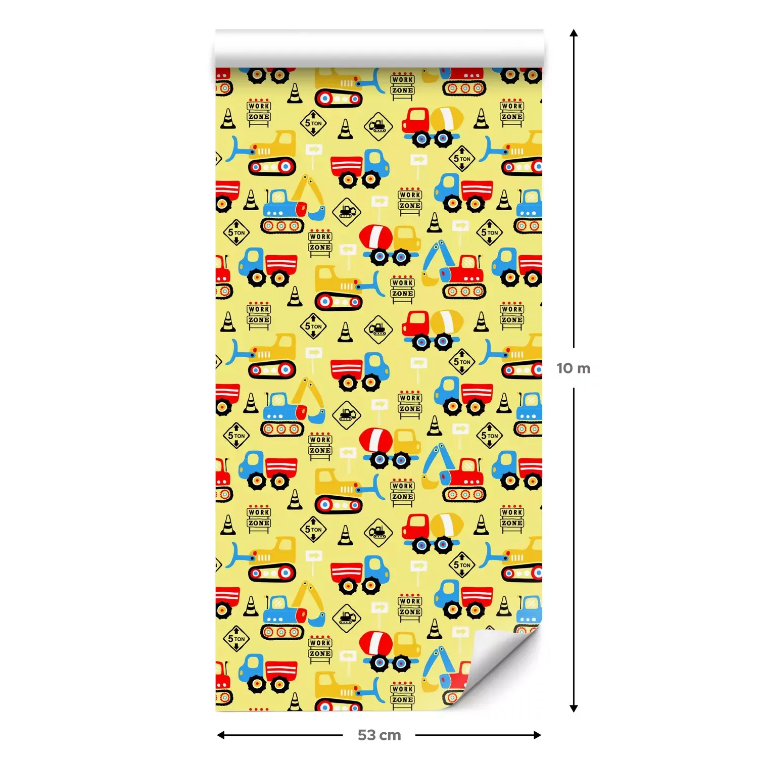 Eine Standard-Tapetenrolle hat die Maße 0,53 m x 10 m und deckt eine Wandfläche von etwa 5 m² ab.