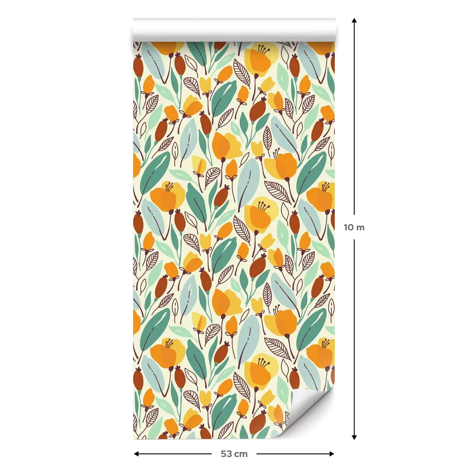 Eine Standard-Tapetenrolle hat die Maße 0,53 m x 10 m und deckt eine Wandfläche von etwa 5 m² ab.