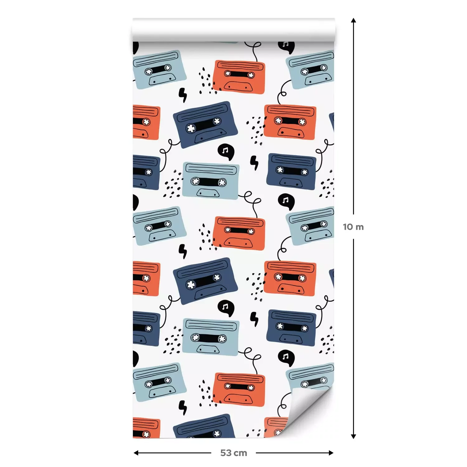 Eine Standard-Tapetenrolle hat die Maße 0,53 m x 10 m und deckt eine Wandfläche von etwa 5 m² ab.