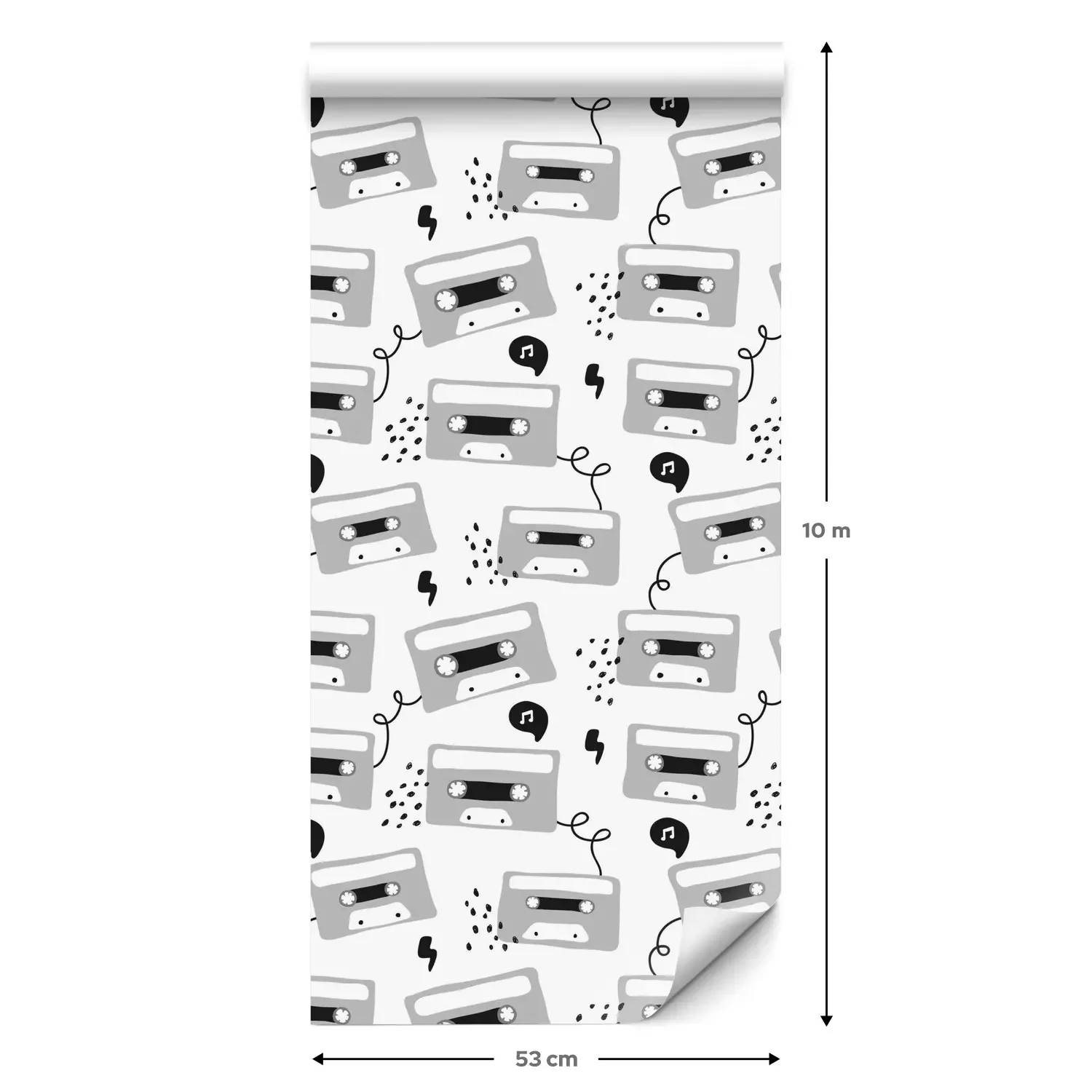 Eine Standard-Tapetenrolle hat die Maße 0,53 m x 10 m und deckt eine Wandfläche von etwa 5 m² ab.