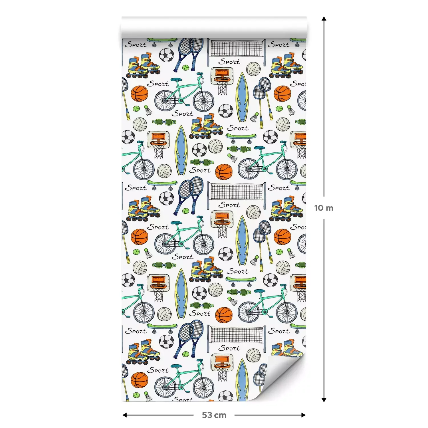 Eine Standard-Tapetenrolle hat die Maße 0,53 m x 10 m und deckt eine Wandfläche von etwa 5 m² ab.
