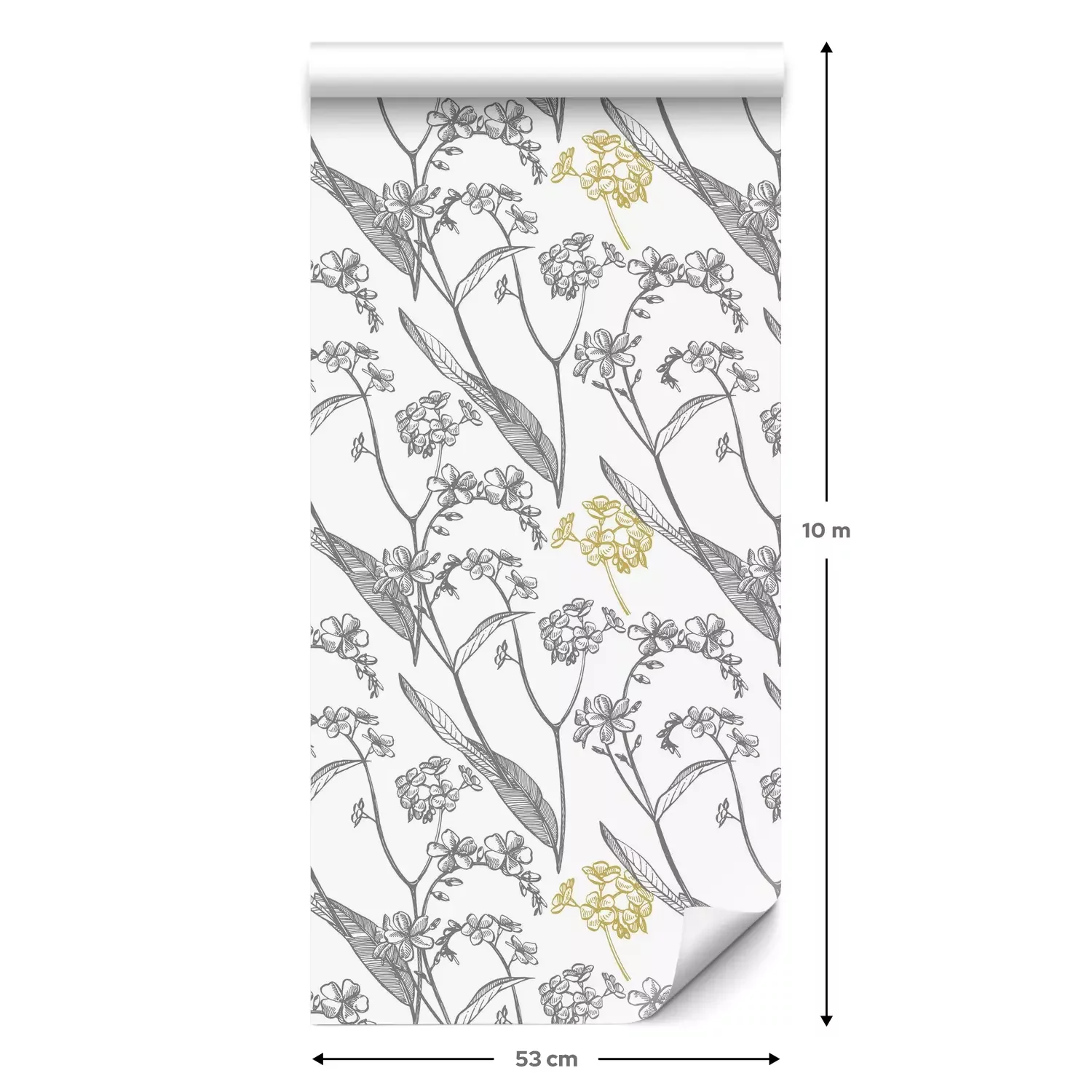 Eine Standard-Tapetenrolle hat die Maße 0,53 m x 10 m und deckt eine Wandfläche von etwa 5 m² ab.