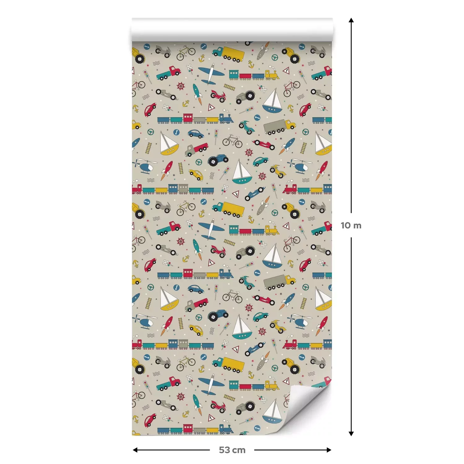 Eine Standard-Tapetenrolle hat die Maße 0,53 m x 10 m und deckt eine Wandfläche von etwa 5 m² ab.