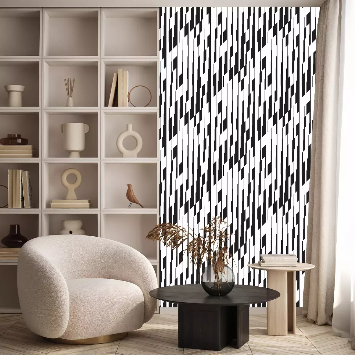 Die Tapete zeichnet sich durch ein sich wiederholendes Muster aus, das ein rhythmisches Design erzeugt. Als Trägermaterial wird hier Vlies verwendet. Sie wird in Rollen mit den standardisierten Maßen 10 m x 53 cm verkauft. Eine Fototapete ist eine spezielle Art von Tapete, auf der ein Foto oder ein realistisches Bild (z.B. eine Landschaft oder eine Stadtansicht) großflächig aufgedruckt ist. Sie wird nicht in Standardrollen verkauft, sondern in Bahnen, die auf die Abmessungen einer bestimmten Wand zugeschnitten sind. So passt das gesamte Motiv perfekt darauf. Zudem können Sie das Material wählen, aus dem die Tapete hergestellt werden soll.